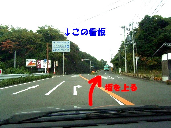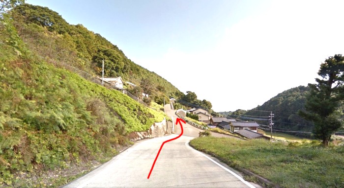 佐賀市方面からは国道207号線で南下、太良町役場を左に見ながら通過、道なりに約1kmぐらい進み左写真のところから右へ坂を登ってください。