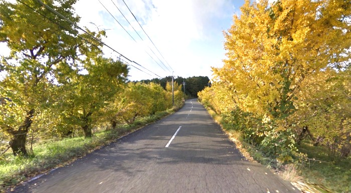 両側に銀杏畑(イチョウ)が両側に広がる所まで登ってくると、もうすぐです。