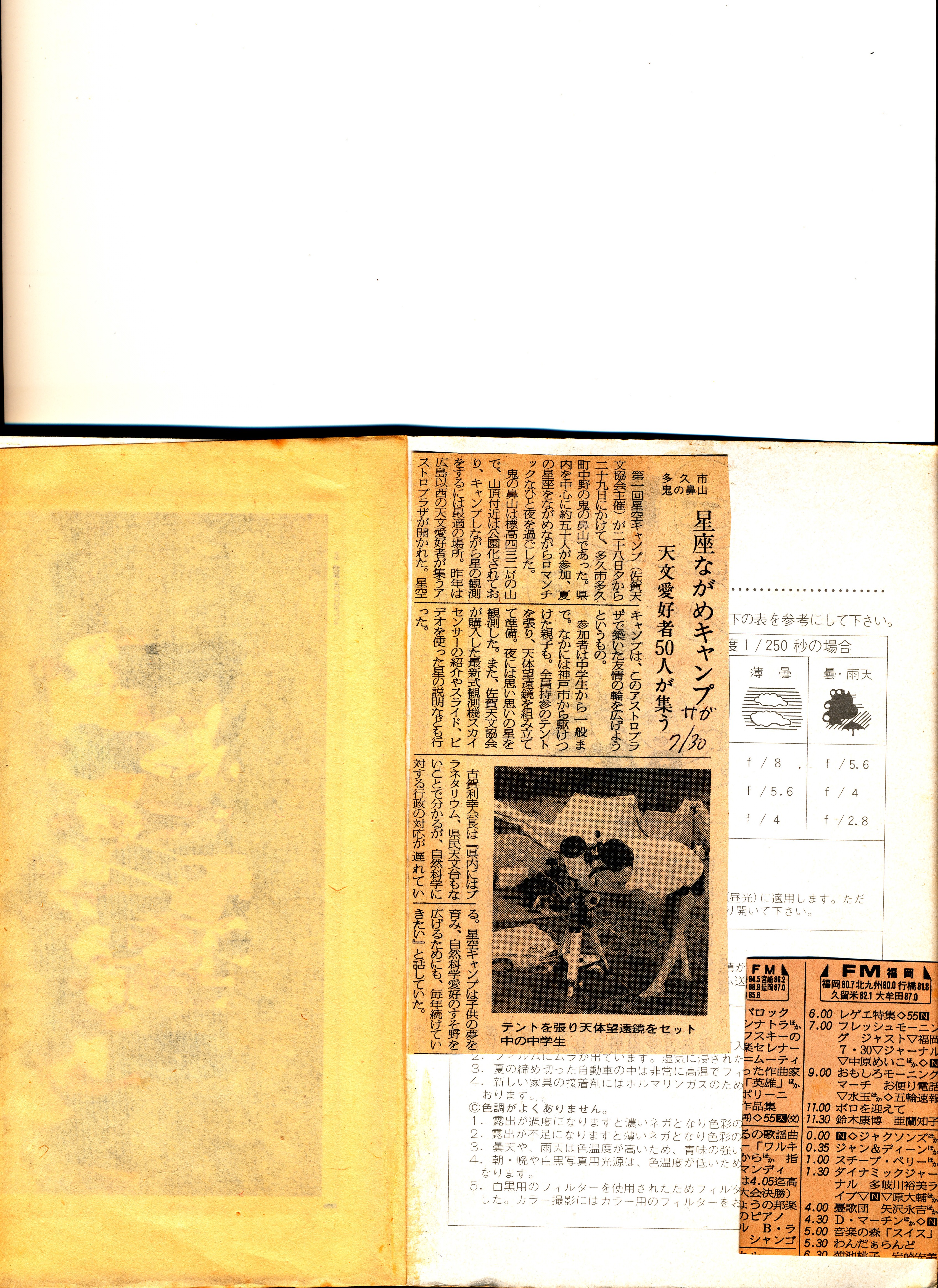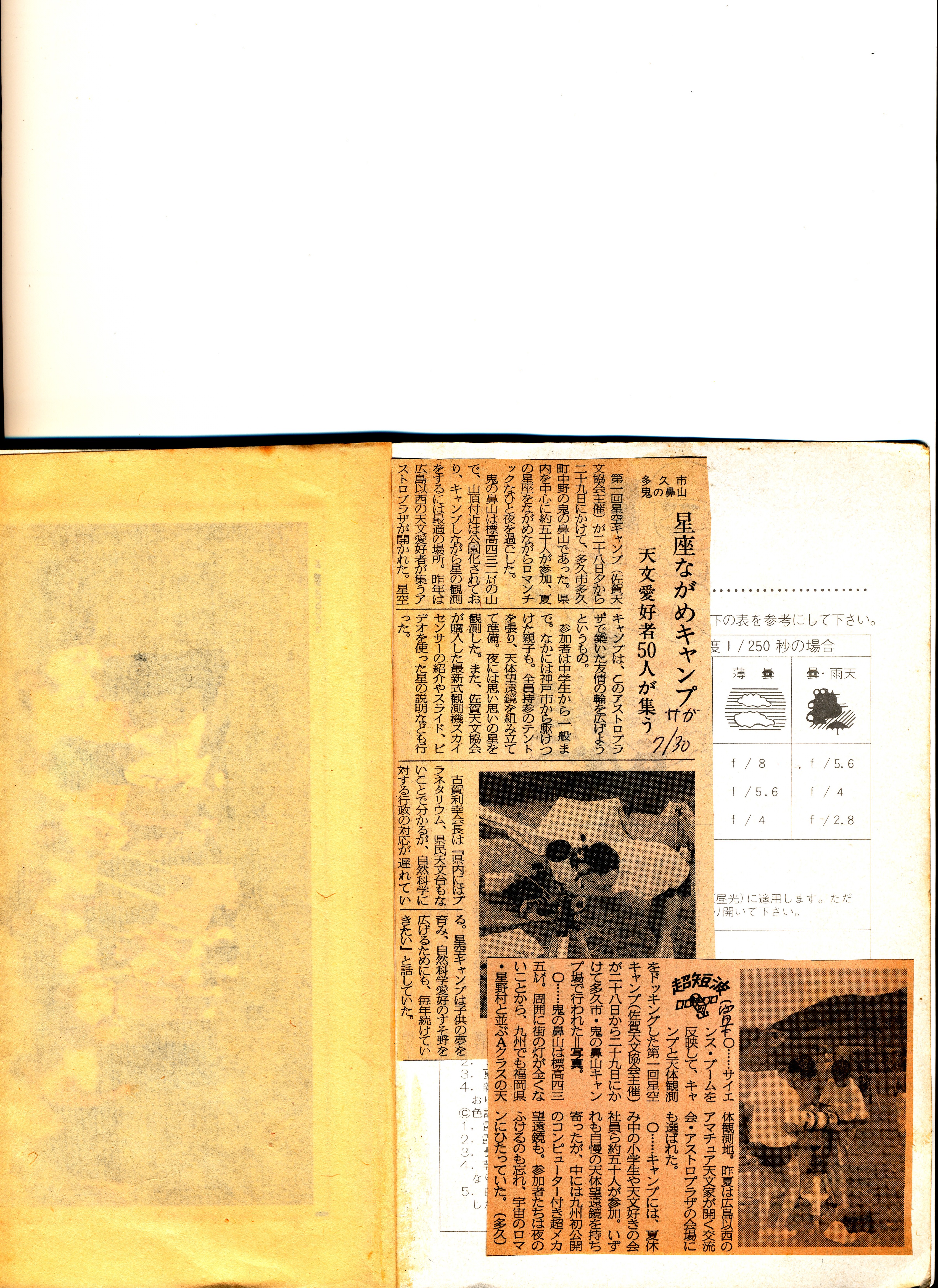 第1回星空キャンプ(鬼の鼻山) 1984年7月28,29日(写真アルバム記録より)