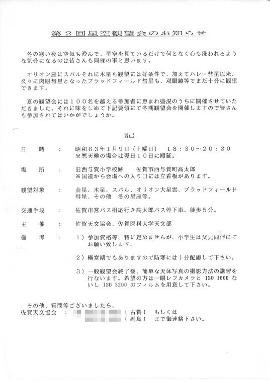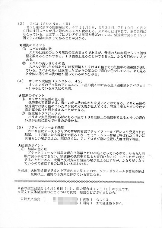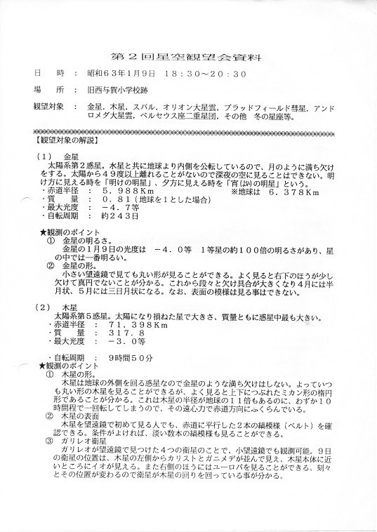 | 1月 | 9日 | 第2回市民星空観望会 | 資料→1,2,3 | ||