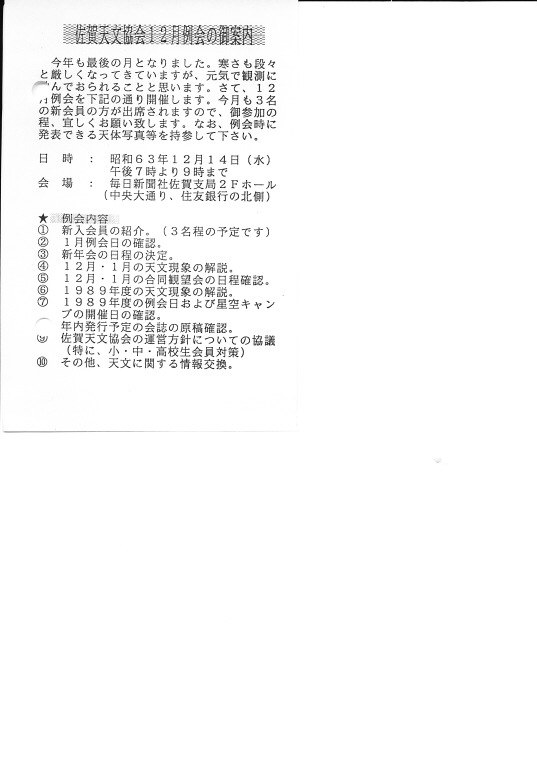 | 15日消印日 | SAS事務局だより発送 | 星食観測の案内 | 画像⇒ 1 | ||