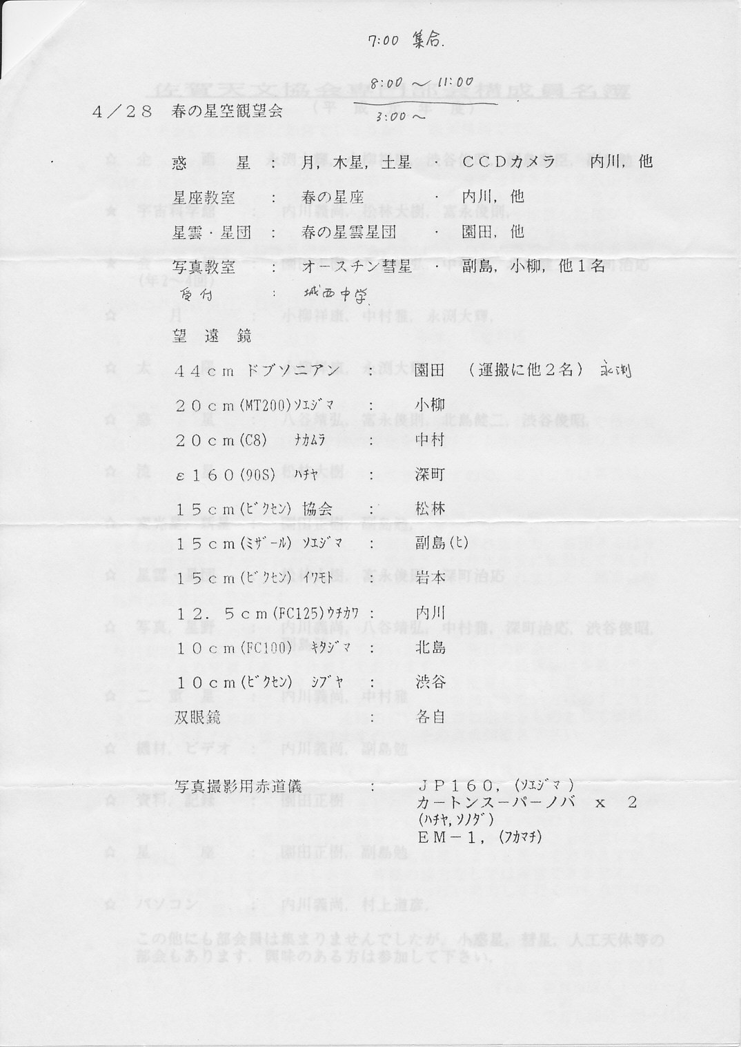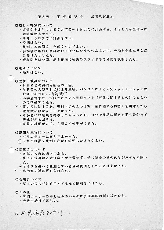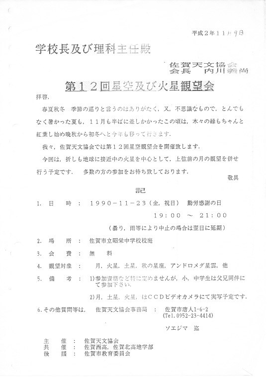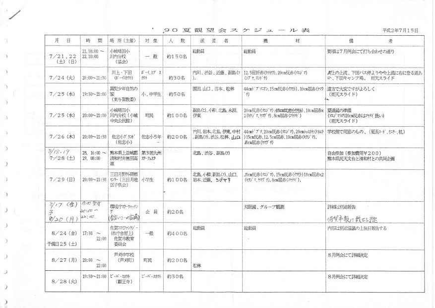 | 観望会 | 小城:晴田小学校川内分校 | 町民 約100名 | 副島ヒ、小柳、北島、永渕、伊藤 | ||