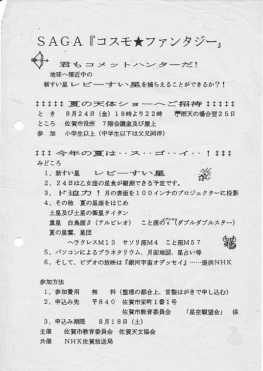 | 不詳 | 91年アストロプラザ佐賀開催決定案内 | 画像⇒1、2 | |||
