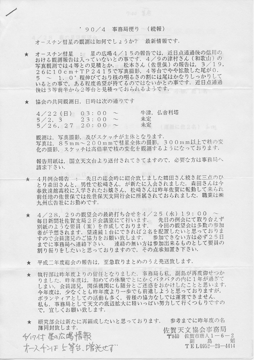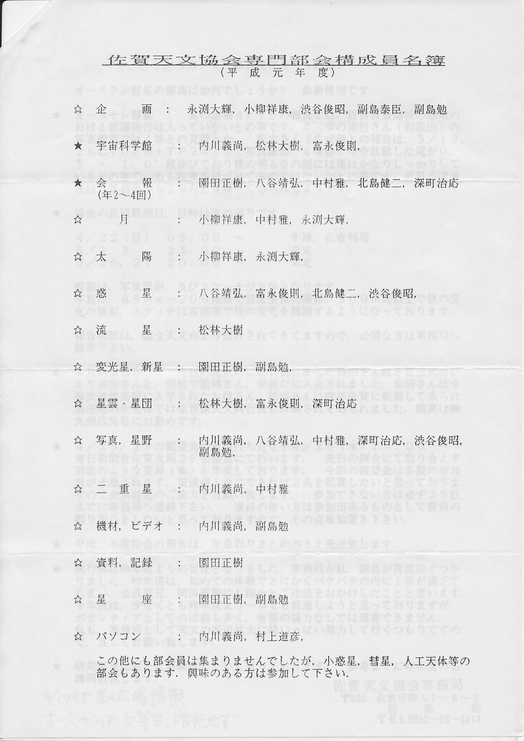 | 不詳 | SAS事務局だより発送 | 画像⇒1、2、3 | |||