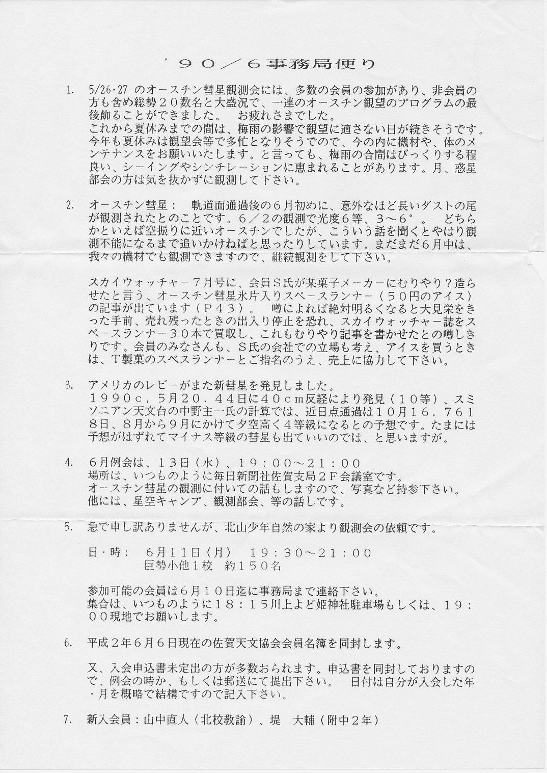 | 6月 | 不詳 | SAS事務局だより発送 | 画像⇒1 | ||