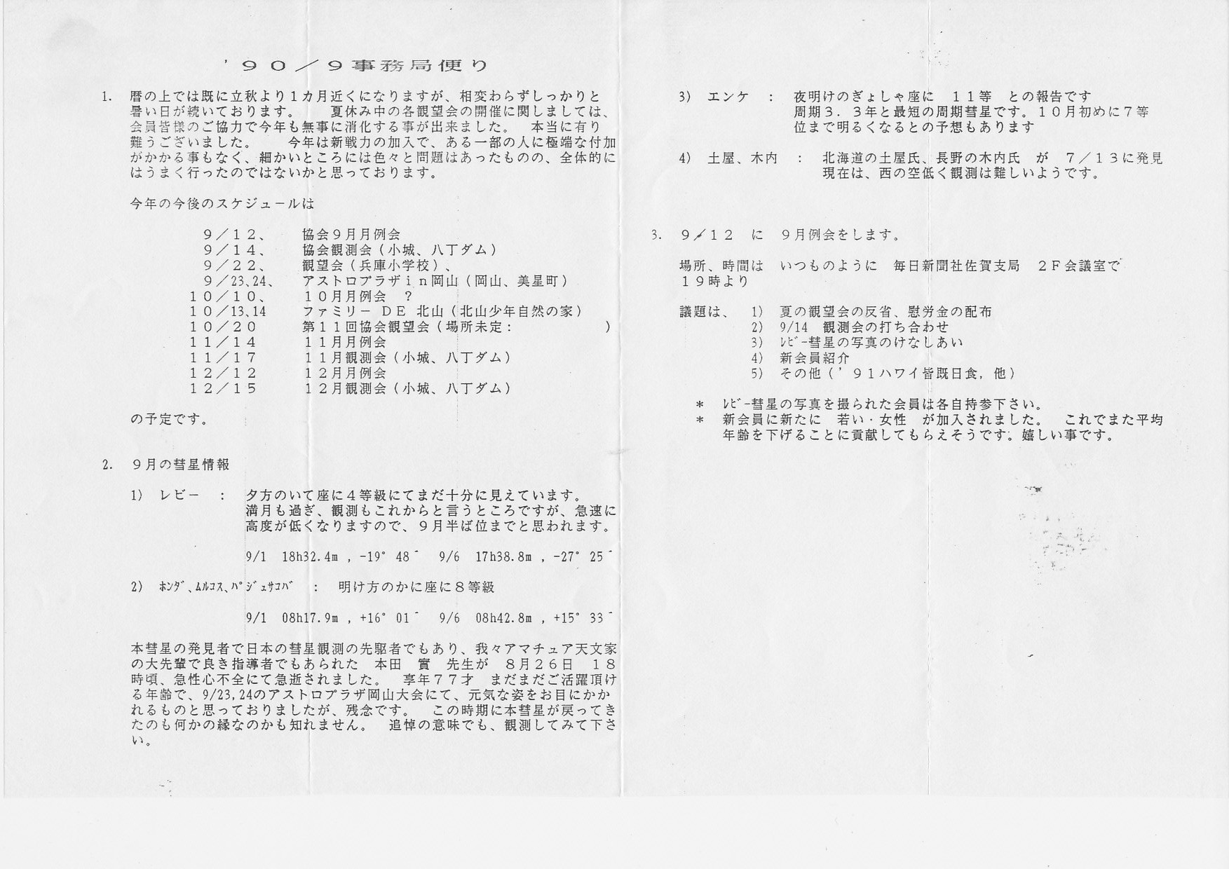 | 9月 | 1日消印日 | SAS事務局だより発送 | 画像⇒1 | ||