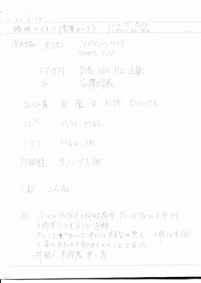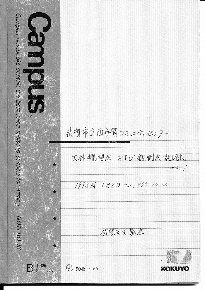 | 19日(金) | 天体観望会 | 西与賀コミニュティーセンター | 記録ノート画像⇒ 1 松林、永渕、中村、春元、副島、園田、梅田、小柳、山田、草場、古川、近藤 | ||