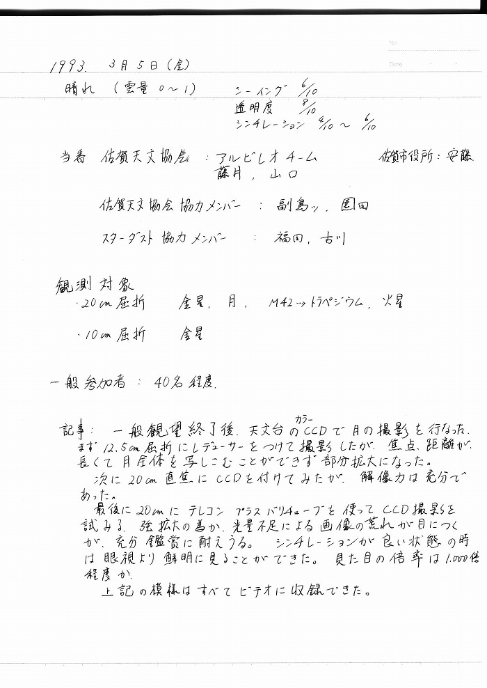 | 3月 | 天文ガイド3月号に掲載 | 107ページ:92年アラスカ遠征の紹介記事 | |||