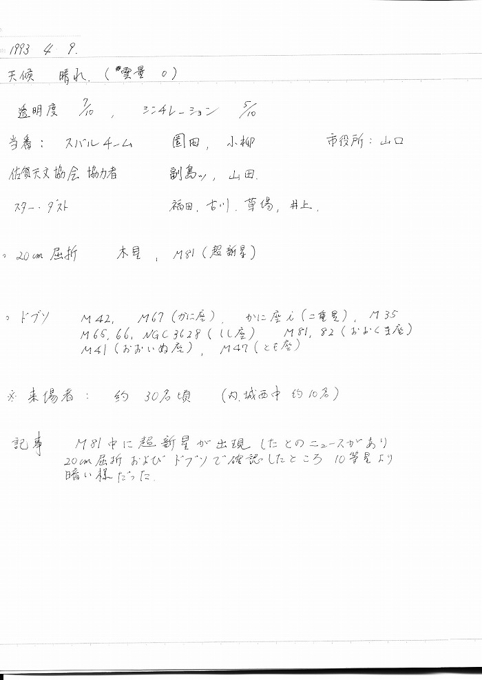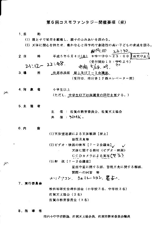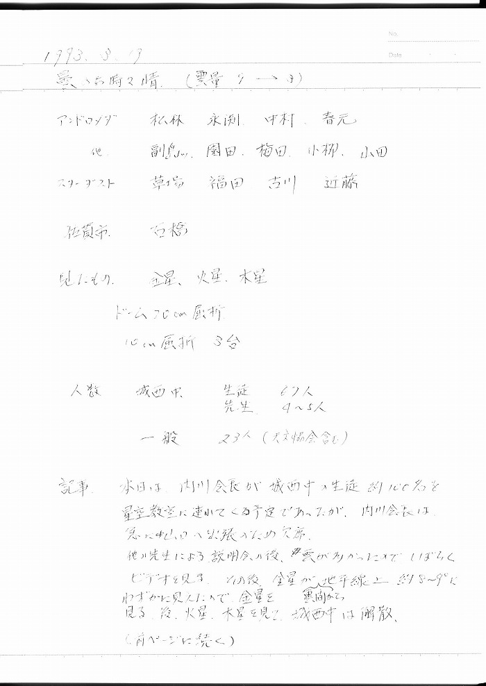 | 9日(金) | 天体観望会 | 西与賀コミニュティーセンター | 記録ノート画像⇒ 1 内川、園田、、野口、前田、古川 | ||
