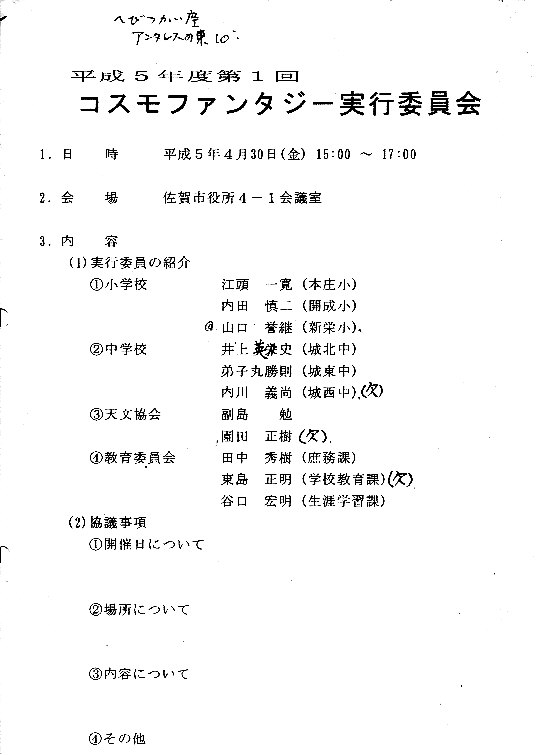 佐賀市役所&西与賀コミ | 教育委員会主催: 佐賀市コスモファンタジー | 資料→1、2、3 池田、梅田、渋谷、副島、副島、園田、鶴田、手嶋、永渕、山田、近藤、北島、小柳、中村、八谷、内川、山口 資料→1 |