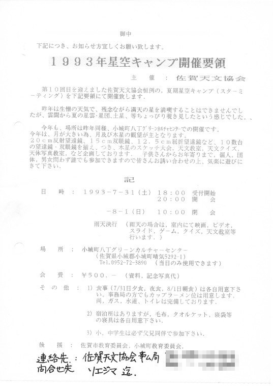 | 天体観望会 | 西与賀コミニュティーセンター | 記録ノート画像⇒ 1 福田、草場、前田、近藤、古川、井上、山崎、豊里、副島、園田、山口、野口 | |||