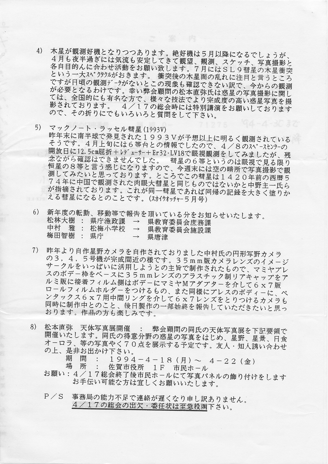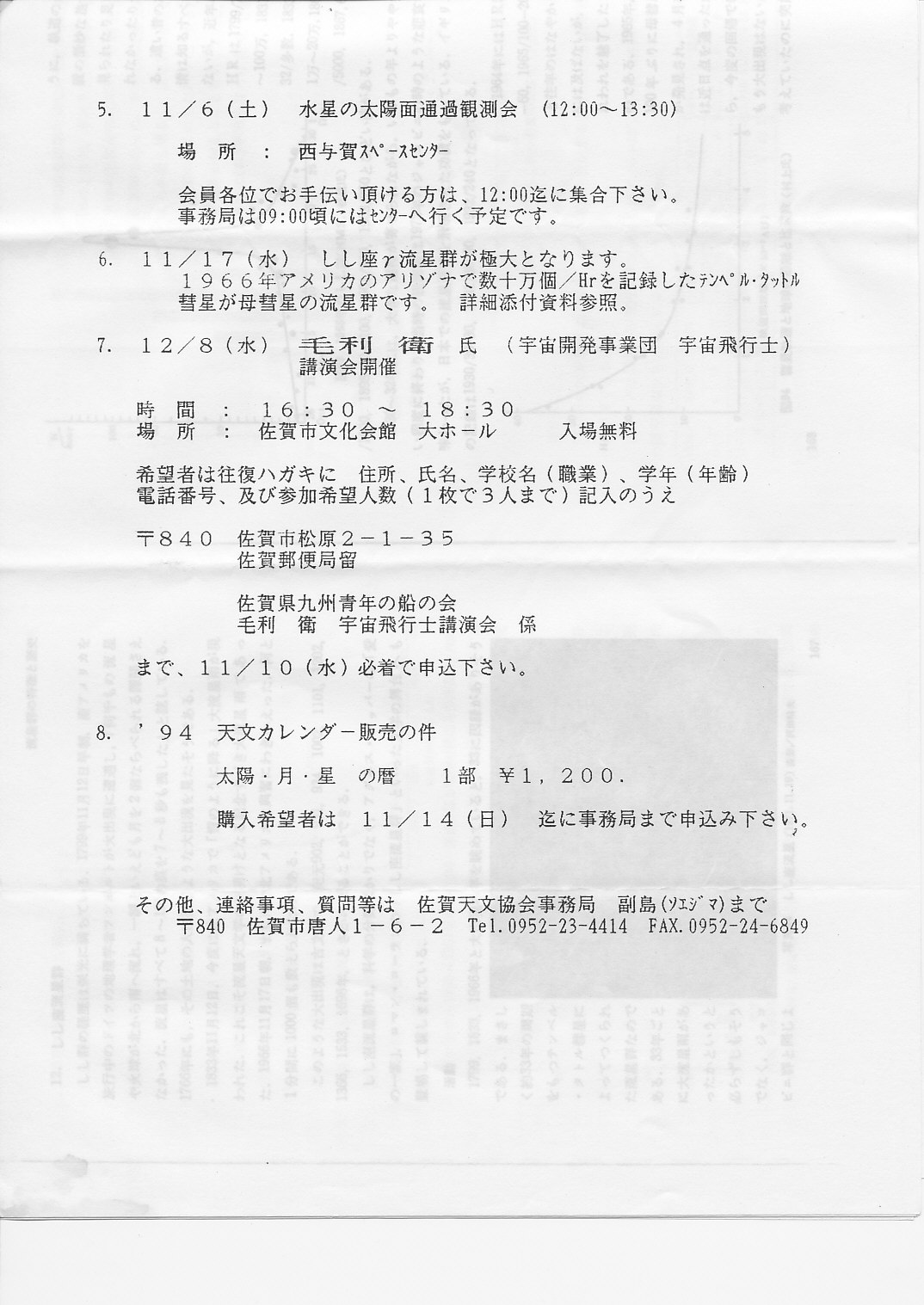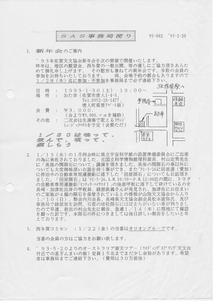 | 13日(水) | 1月例会 | 日本火災 4F会議室 | 村山定男先生講演「美保の関隕石」 | 資料⇒ 1 アルバム写真 | |