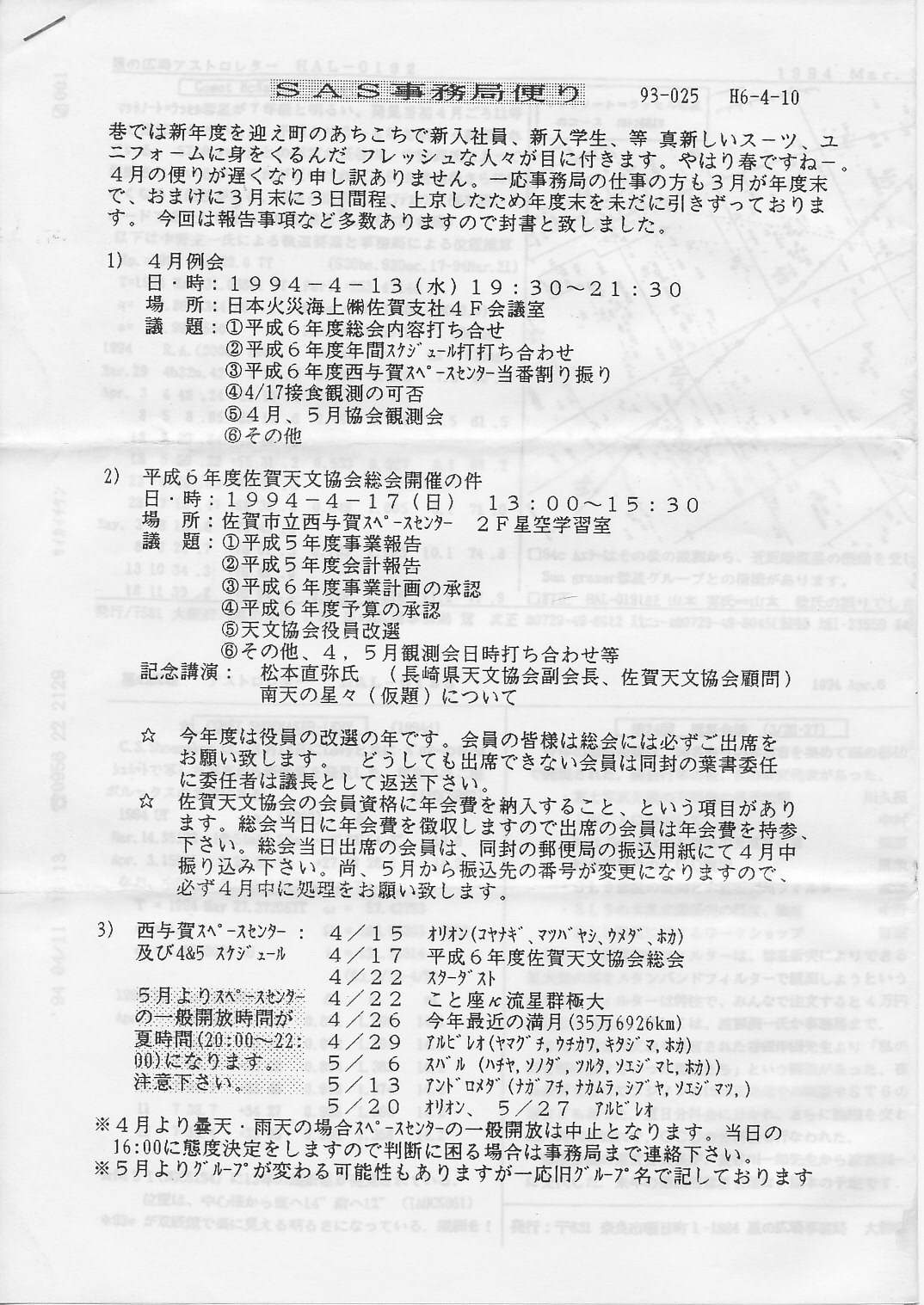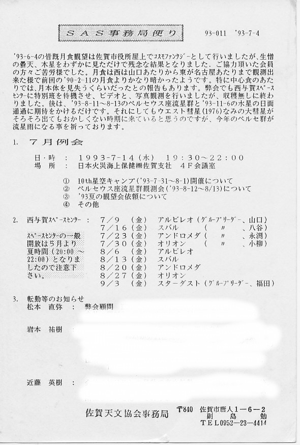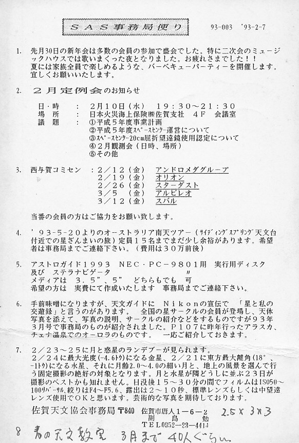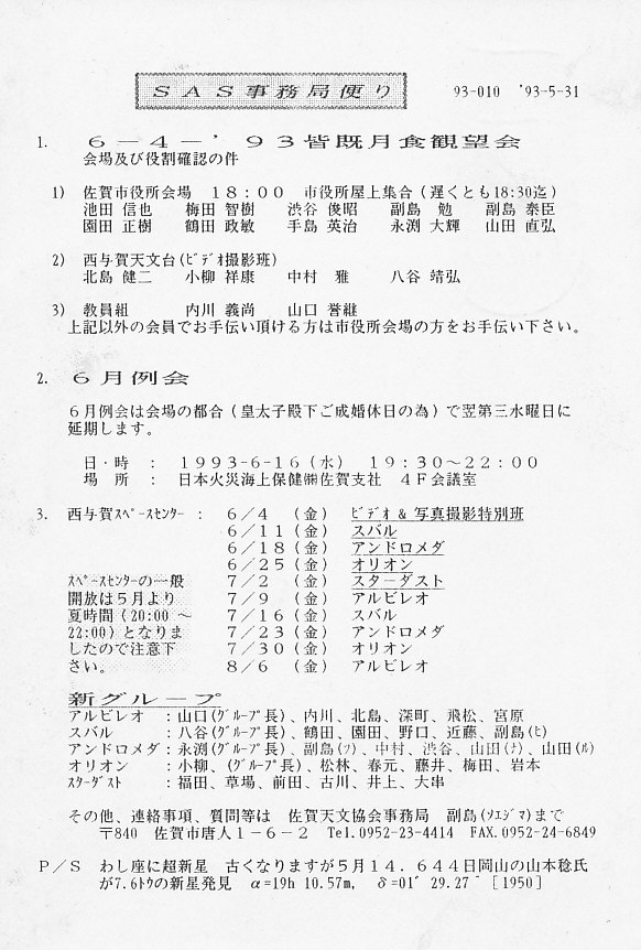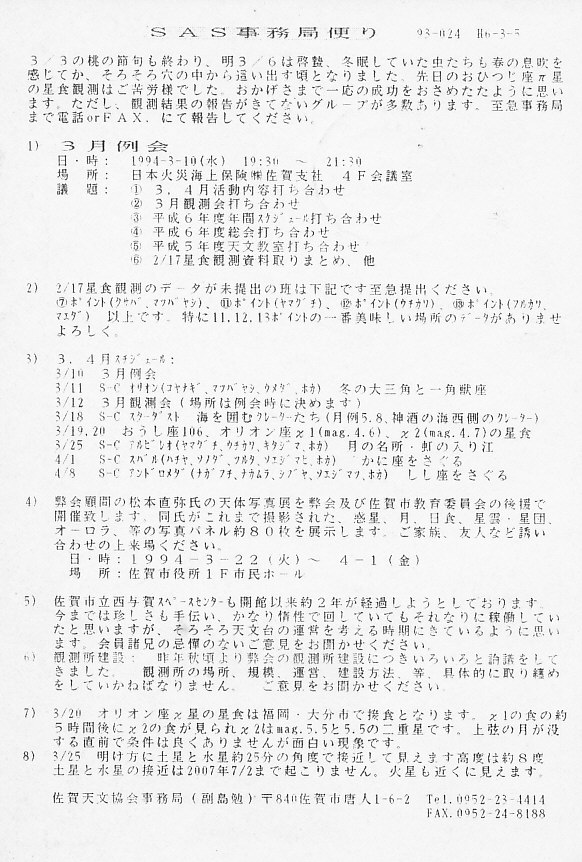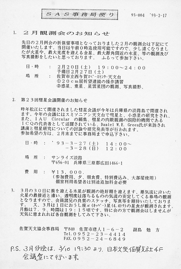 | 20日 | SAS事務局だより発送 | 「田原隕石情報」 | 画像⇒ 1 | ||
