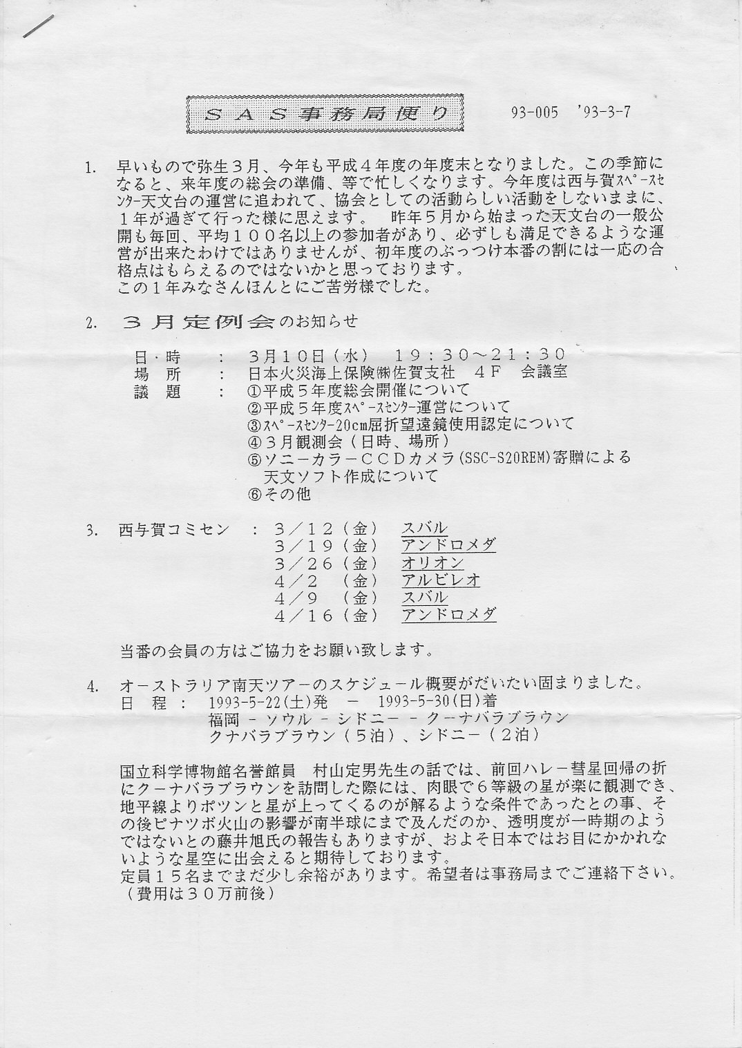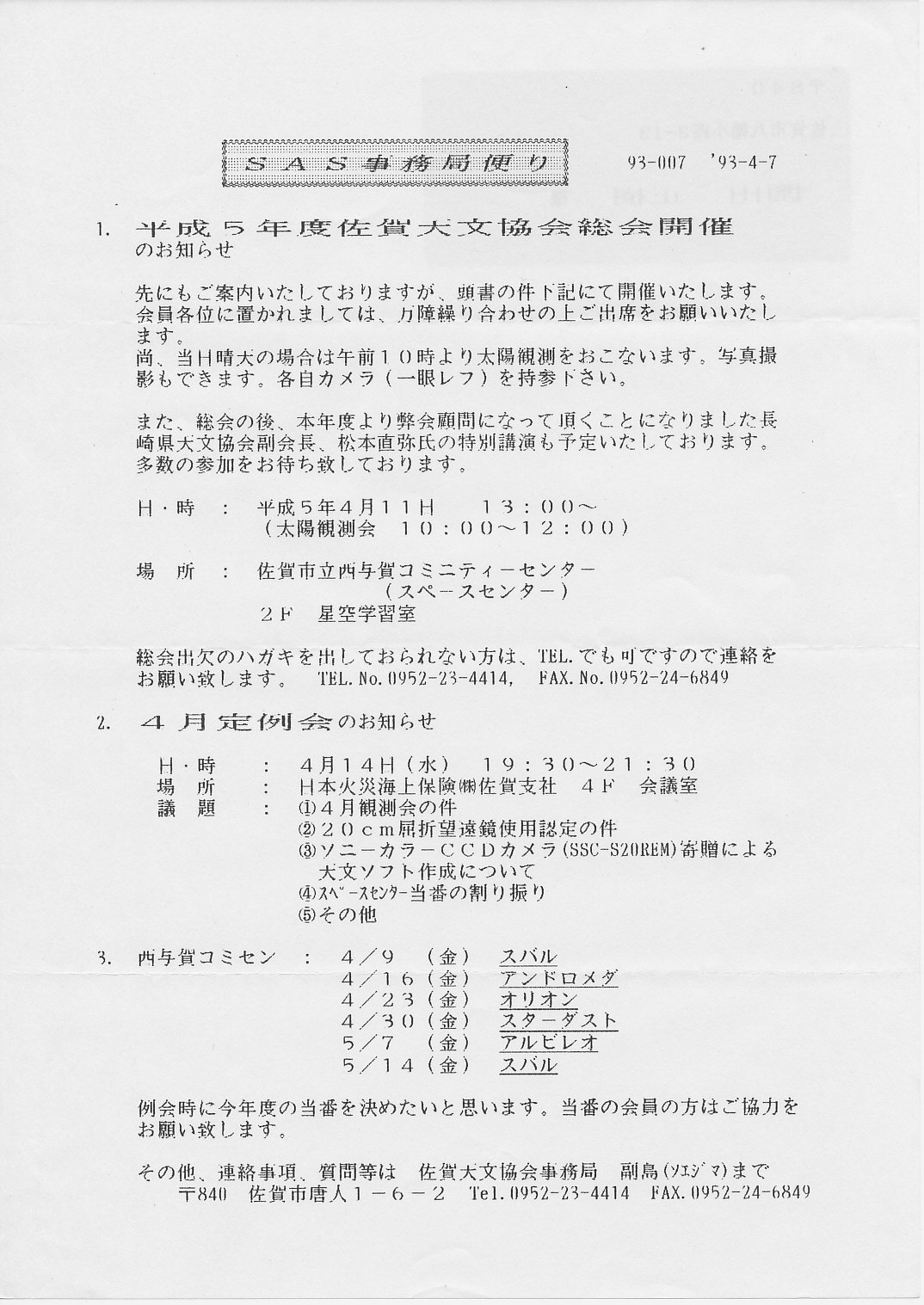 | SAS事務局だより発送 | 日本火災 4F会議室 | 画像⇒ 1 | |||