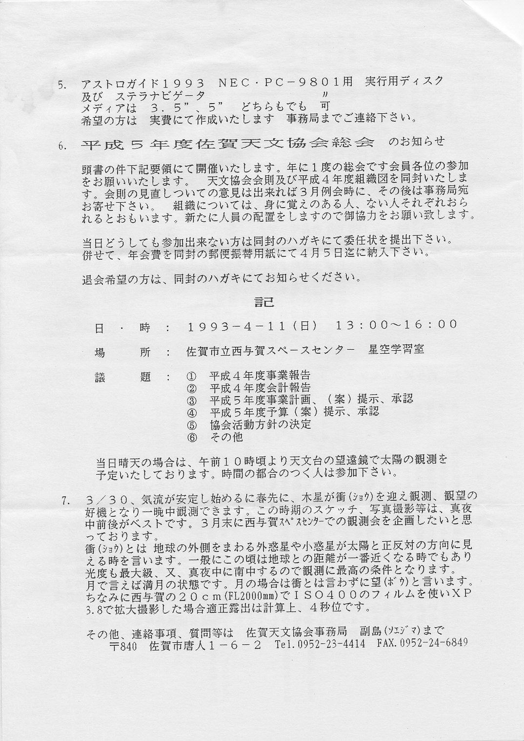 | 27日(土) | 協会観測会 | 西与賀コミニュティーセンター | |||
