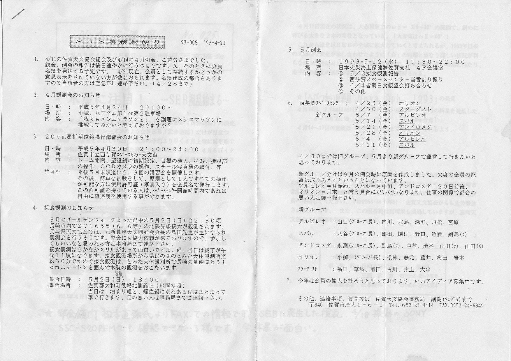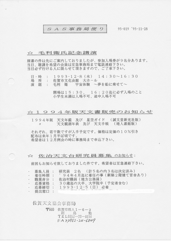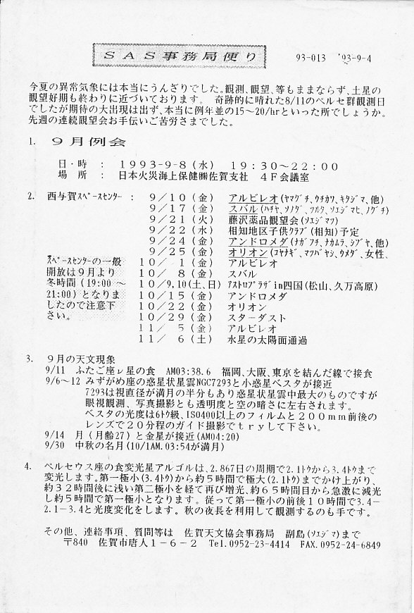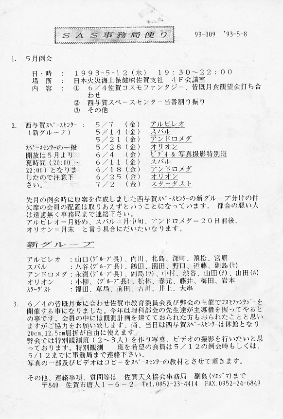 | SAS事務局だより発送 | 画像⇒ 1 | ||||