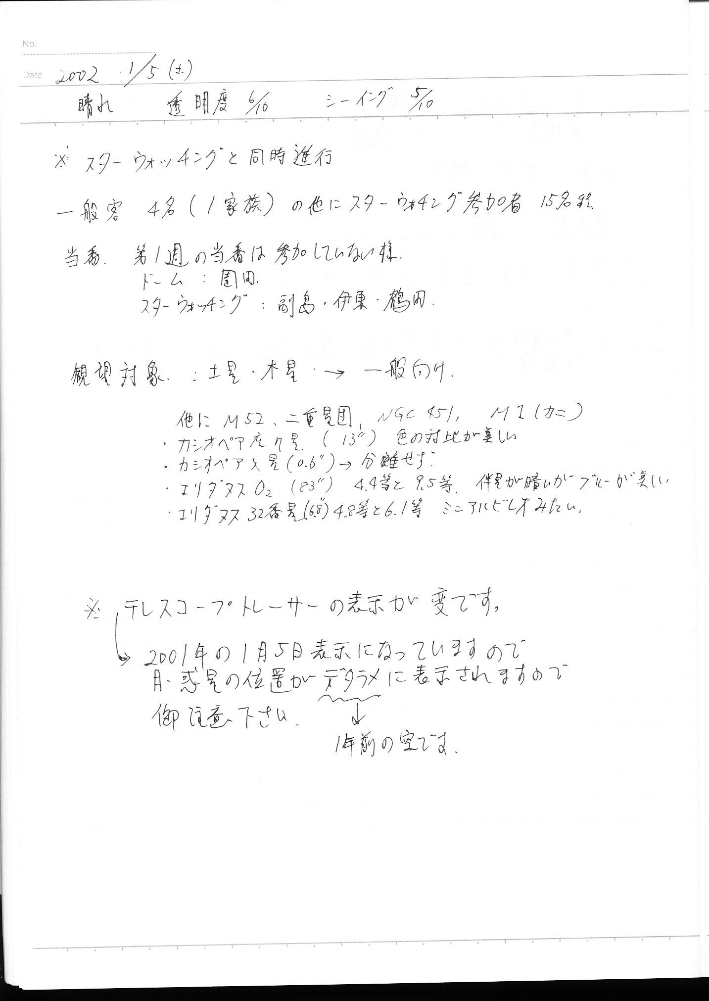 | 1月 | 5日(土) | 天体観望会 | 西与賀コミニュティーセンター | 佐賀市スターウオッチング | 記録ノート画像⇒ 1 園田、副島、伊東、鶴田 |