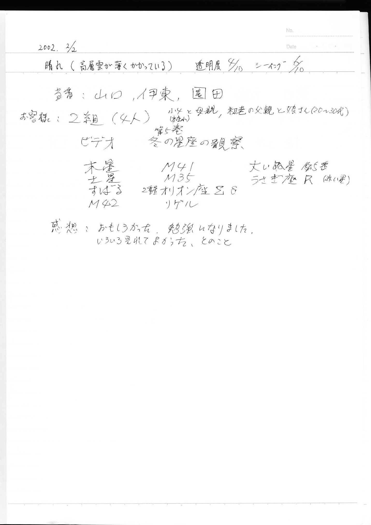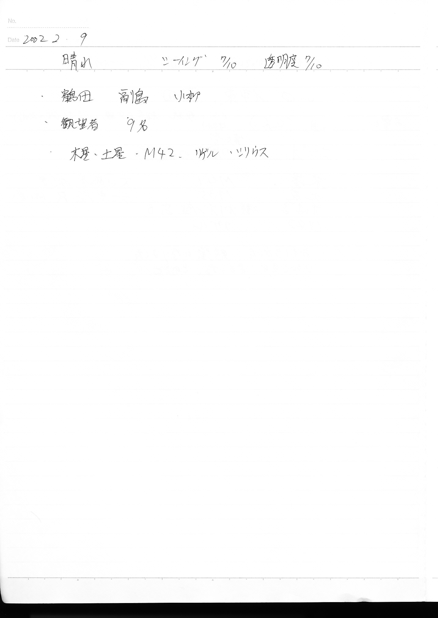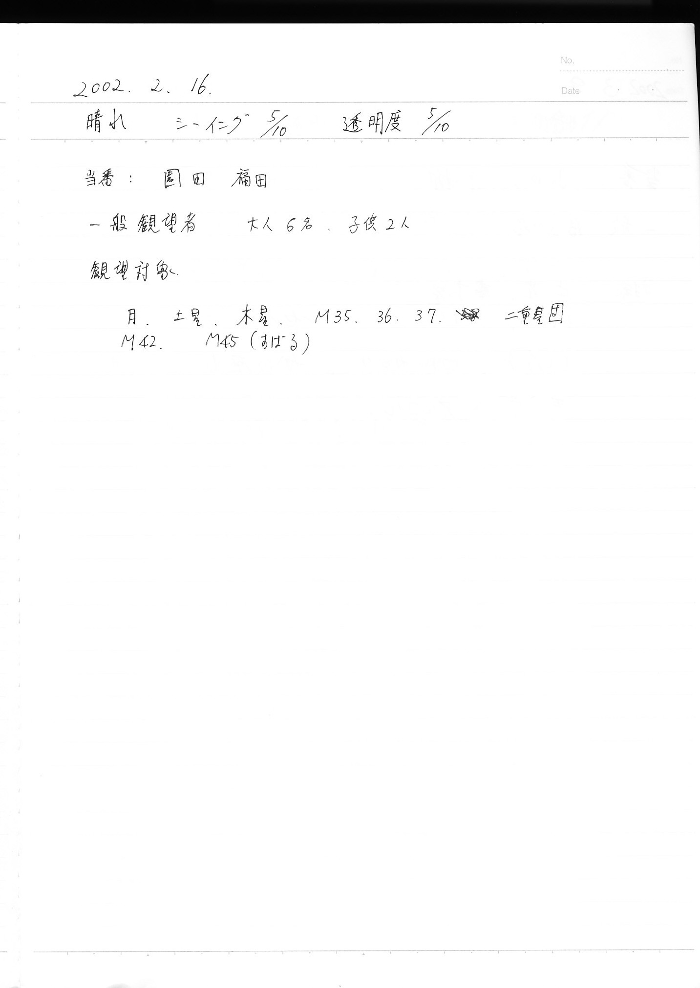 | 2月 | 2日(土) | 天体観望会 | 西与賀コミニュティーセンター | 記録ノート画像⇒ 1、2 山口、伊東、園田 | |