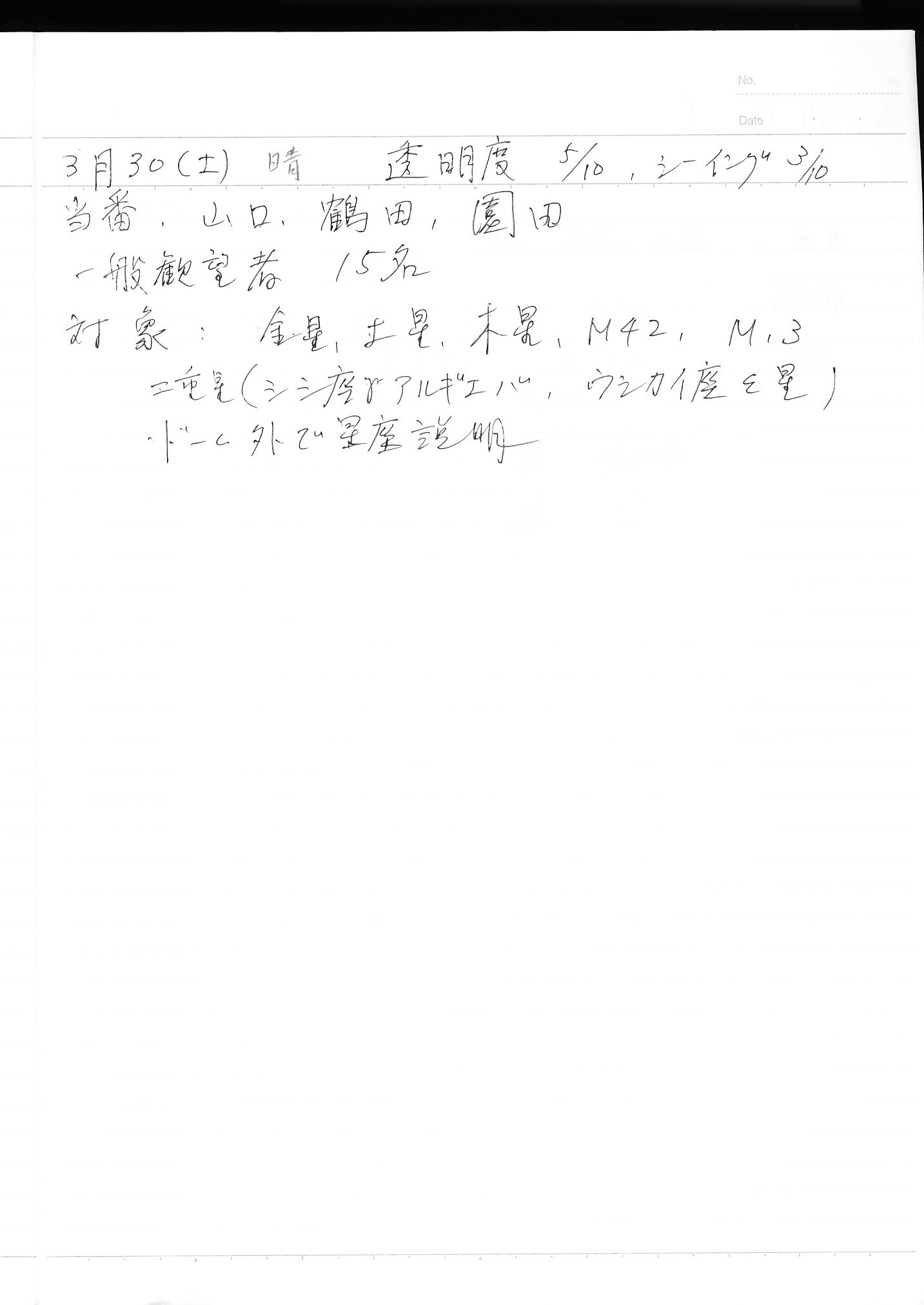 | 9日(土) | 天体観望会 | 西与賀コミニュティーセンター | 記録ノート画像⇒ 1 山口、小柳 | ||