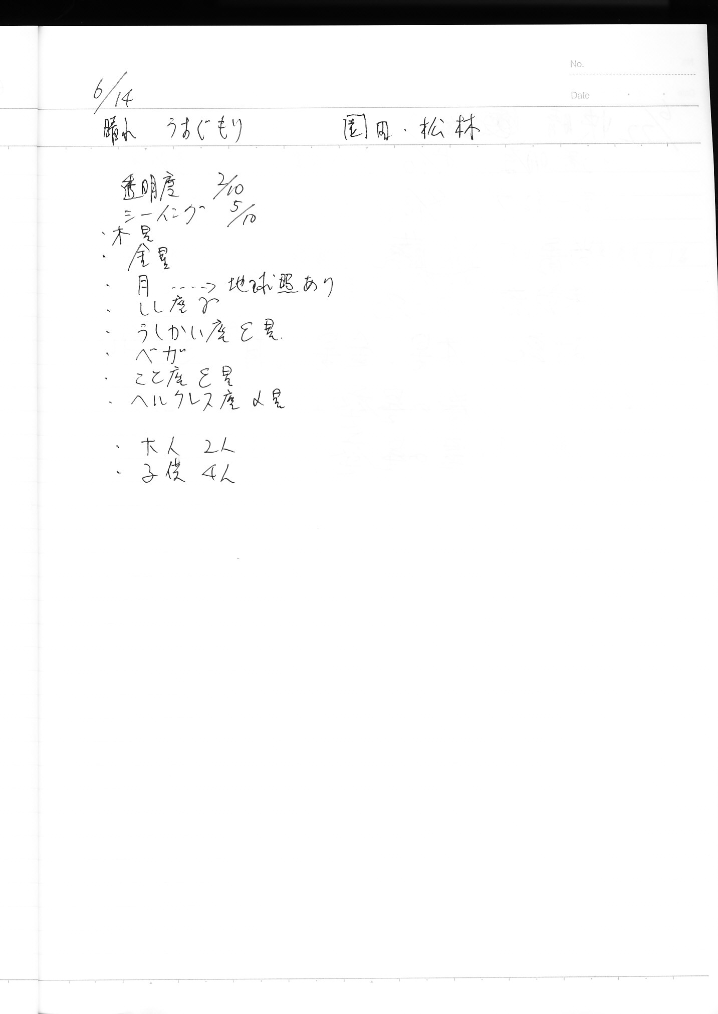 | 14日(土) | 天体観望会 | 西与賀コミニュティーセンター | 記録ノート画像⇒ 1 園田 | ||