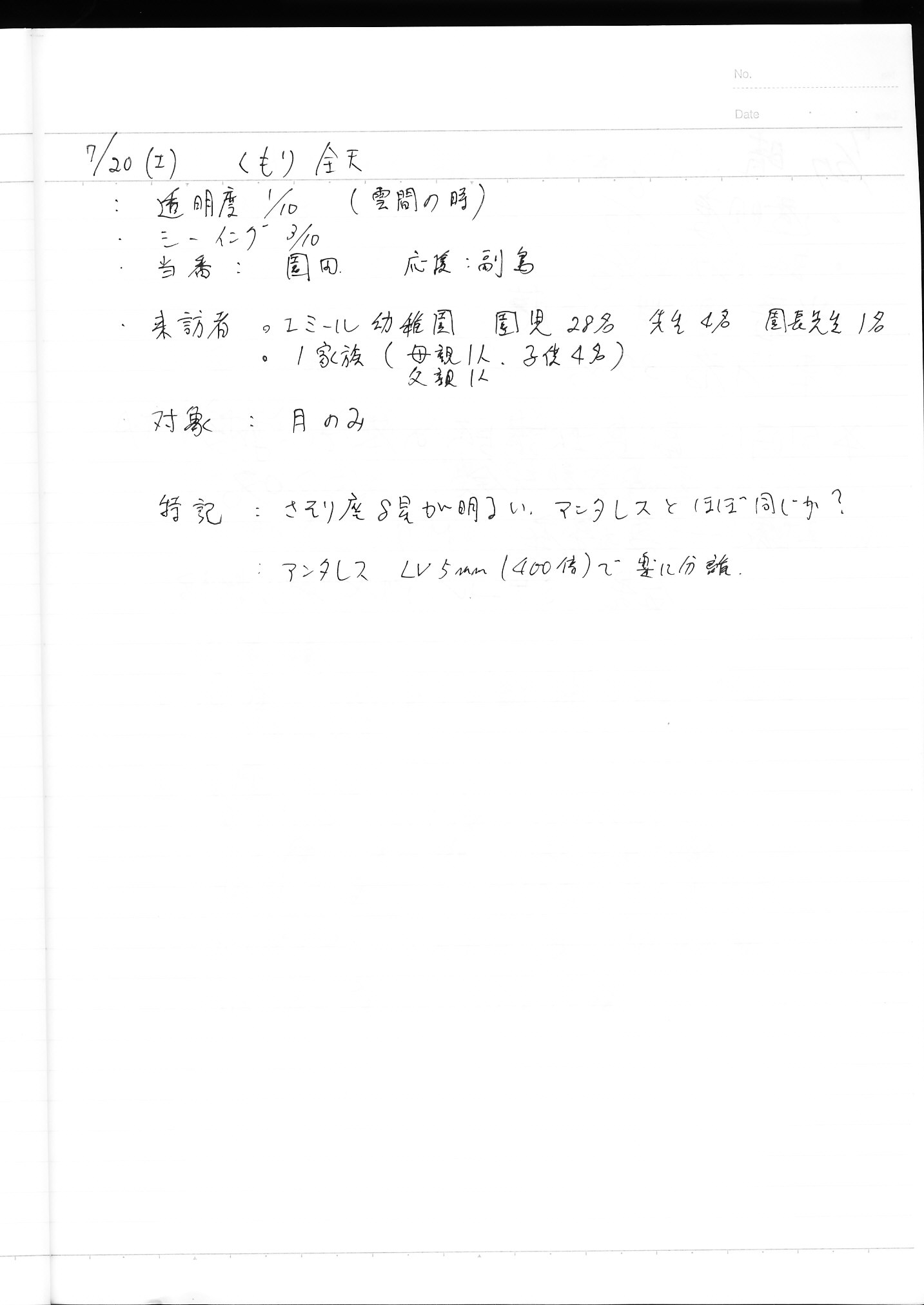 | 21日(土) | 天体観望会 | 西与賀コミニュティーセンター | 記録ノート画像⇒ 1 近藤 | ||