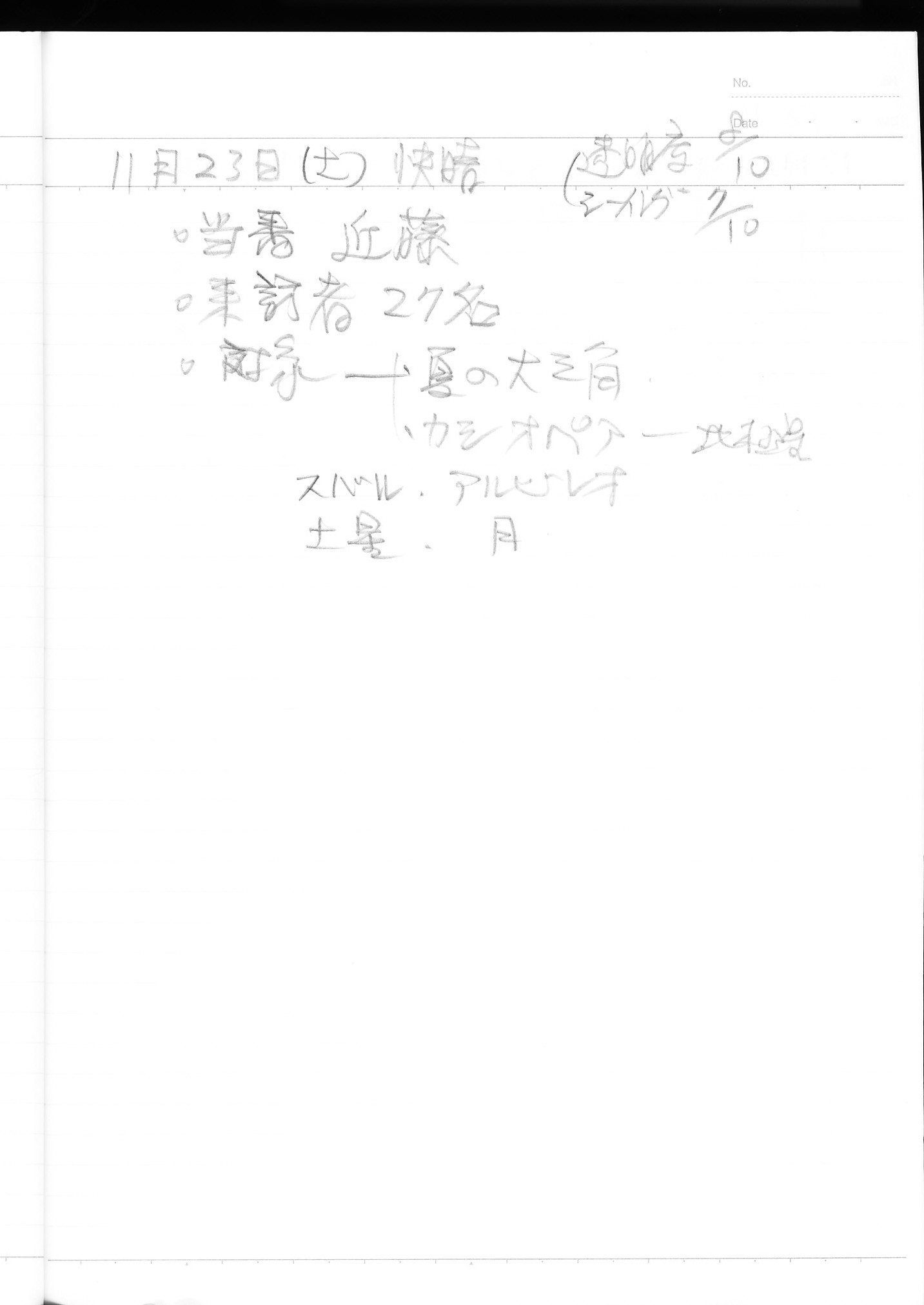 | 23日(土) | 天体観望会 | 西与賀コミニュティーセンター | 記録ノート画像⇒ 1 近藤 | ||