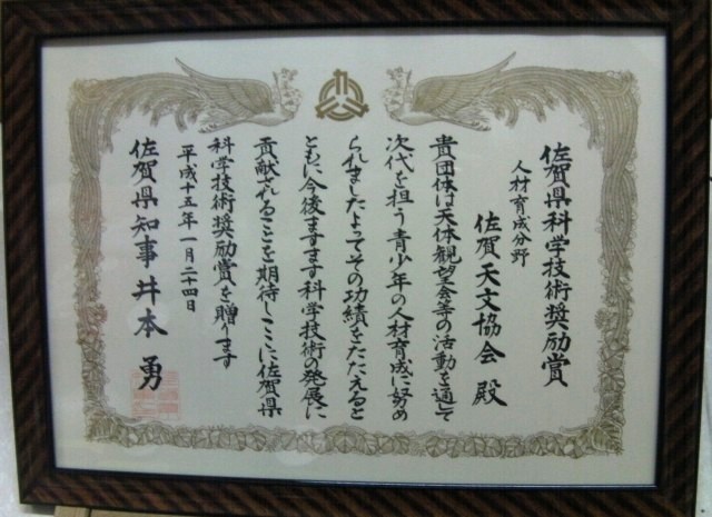 | 24日(金) | 授賞式 | 佐賀県 アバンセホール | 佐賀県科学技術奨励賞 授賞式 | 天文の普及で受賞 写真 1、2、3、4、5、6、7、8、9、10、11、12 | |