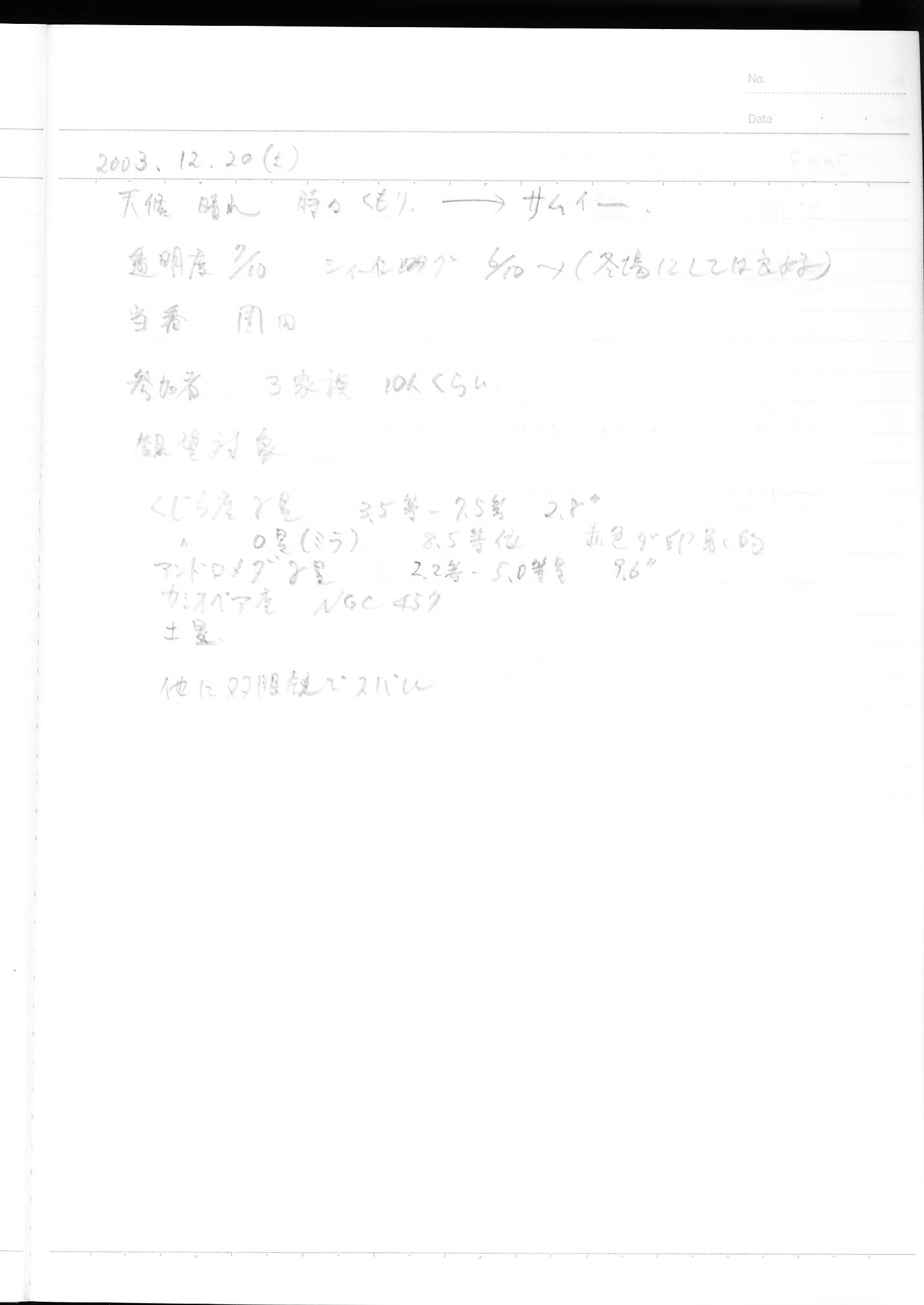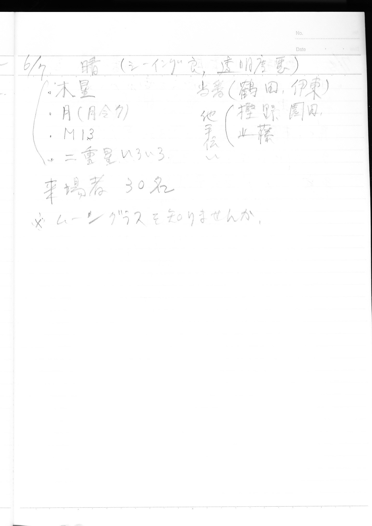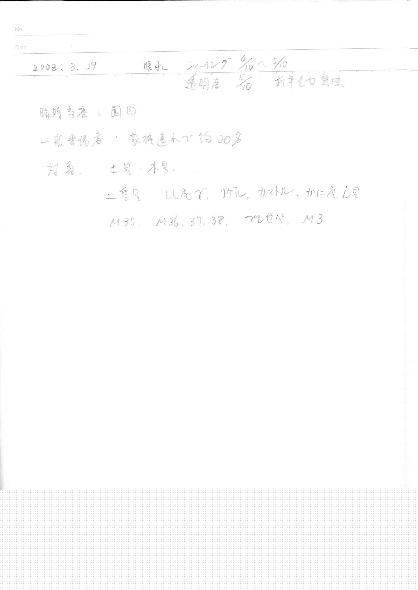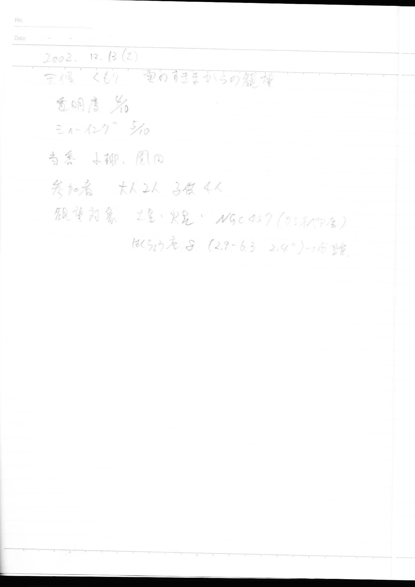 | 17日(土) | 天体観望会 | 西与賀コミニュティーセンター | 記録ノート画像⇒ 1 近藤 | ||
