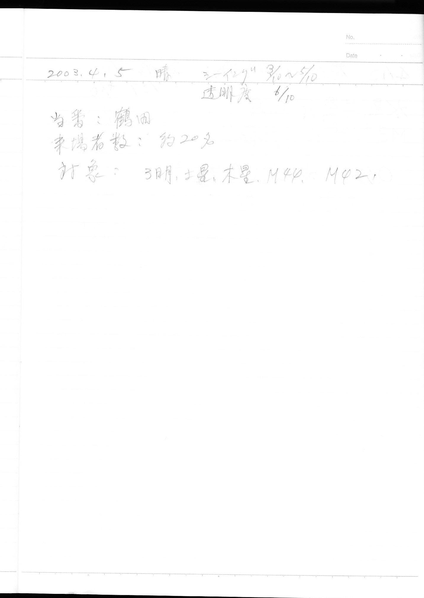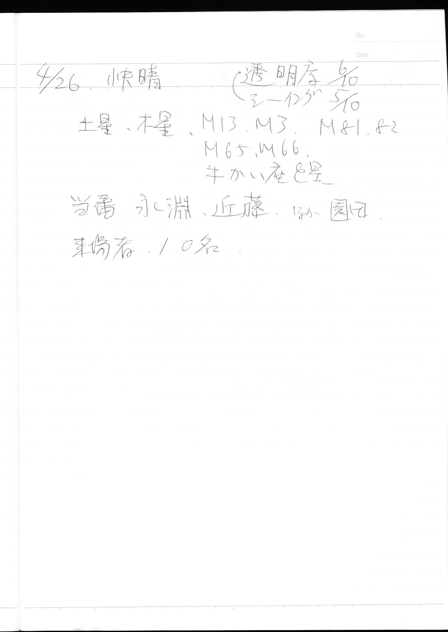 | 4月 | 5日(土) | 天体観望会 | 西与賀コミニュティーセンター | 記録ノート画像⇒ 1 鶴田 | |