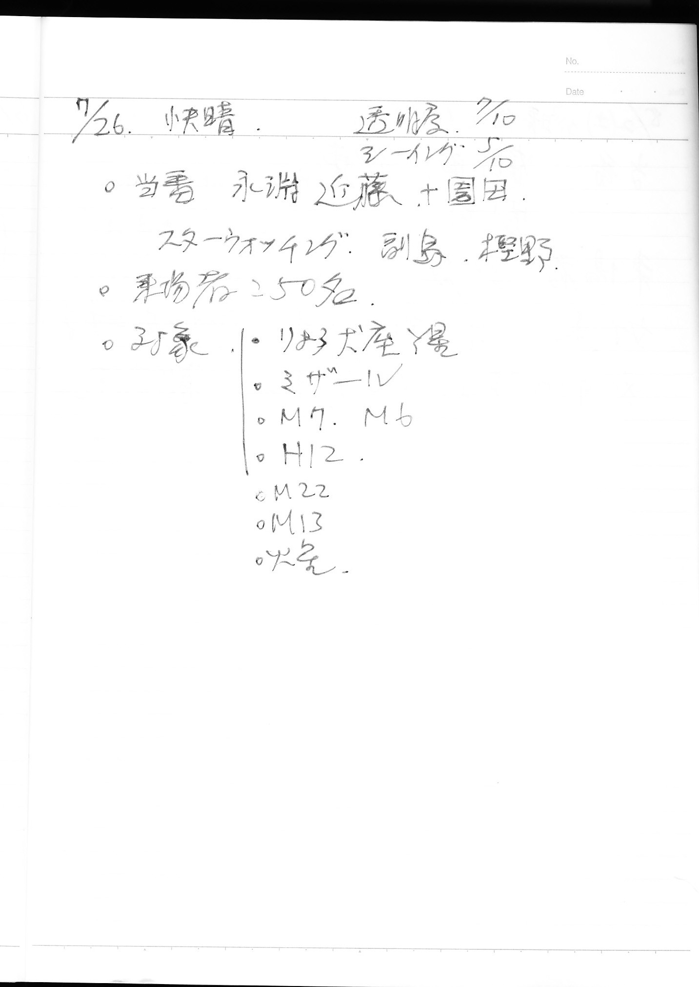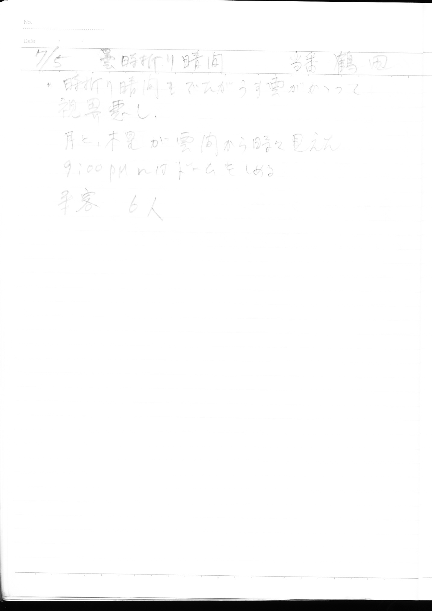| 7月 | 5日(土) | 天体観望会 | 西与賀コミニュティーセンター | 記録ノート画像⇒ 1 鶴田 | |