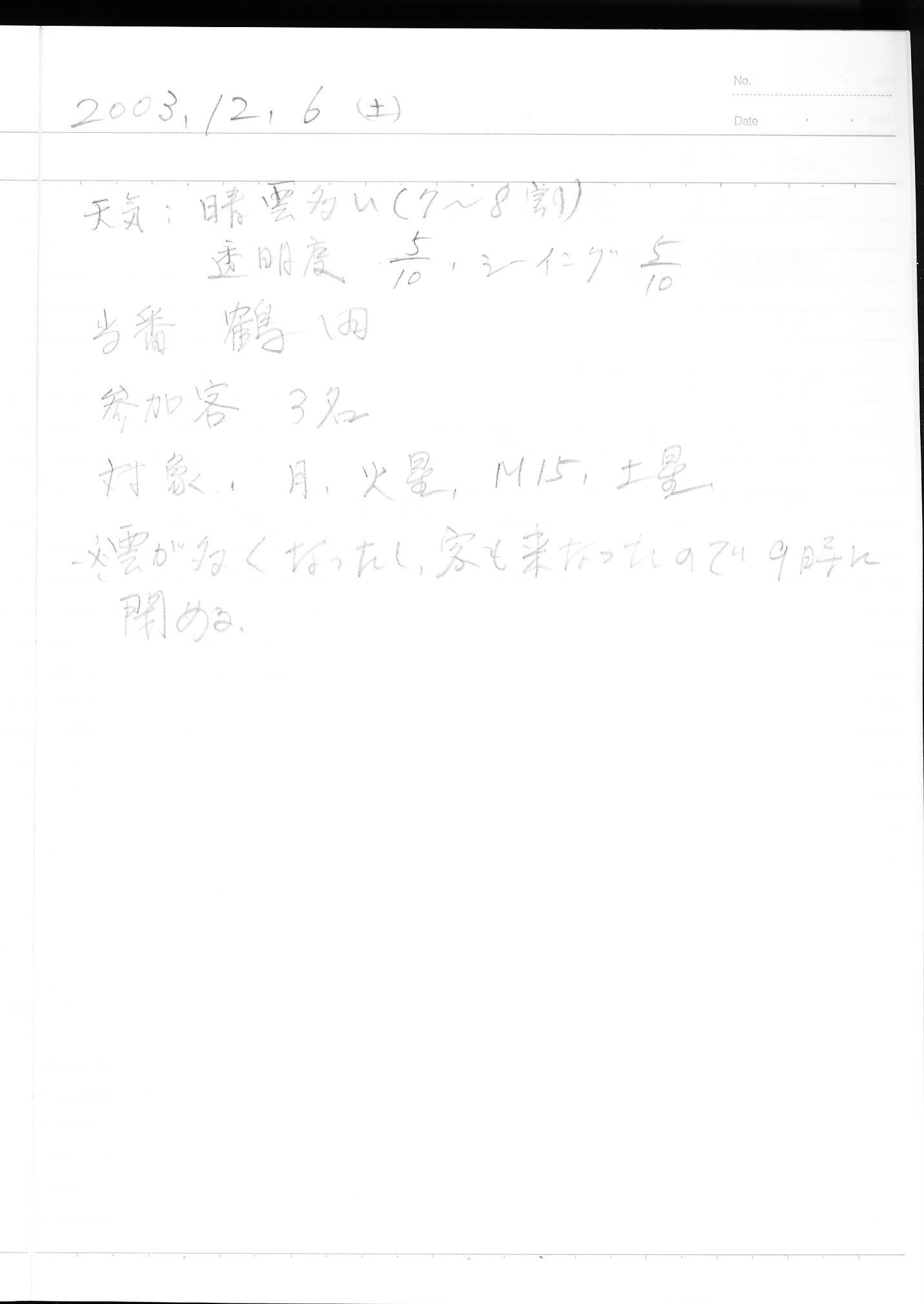 | 12月 | 6日(土) | 天体観望会 | 西与賀コミニュティーセンター | 記録ノート画像⇒ 1 鶴田 | |