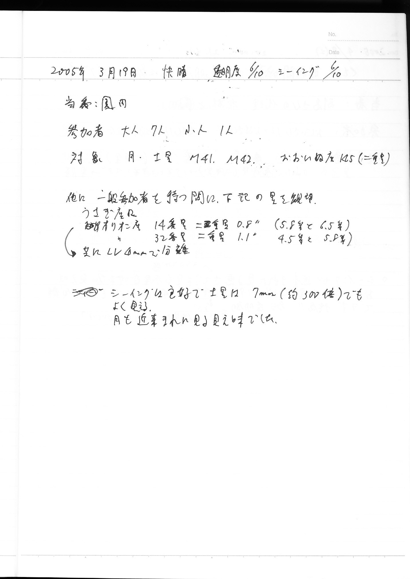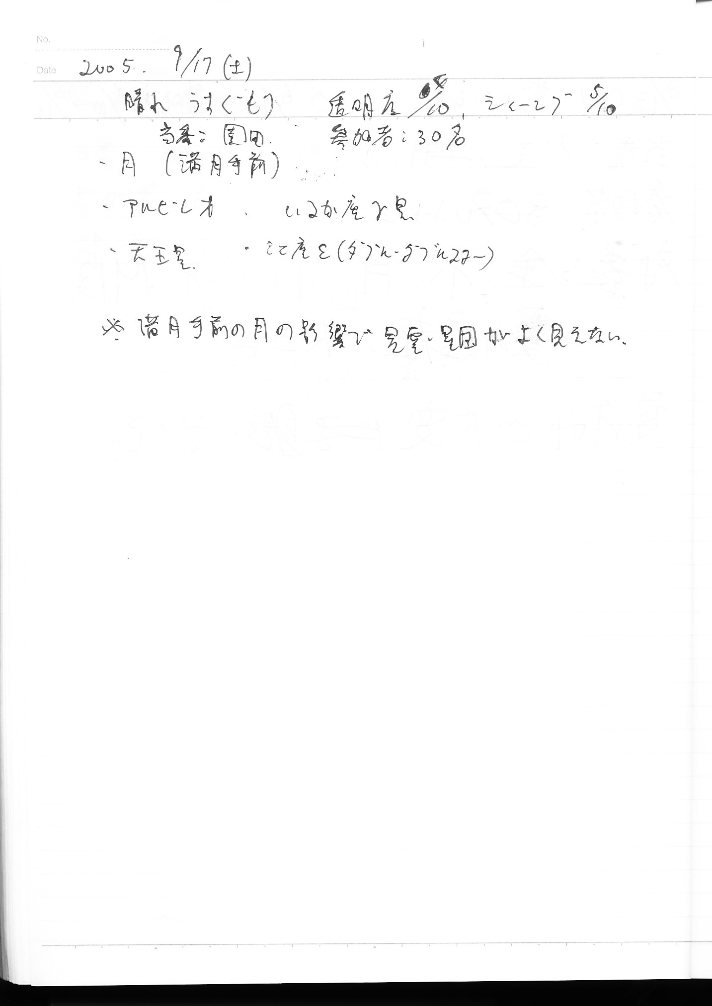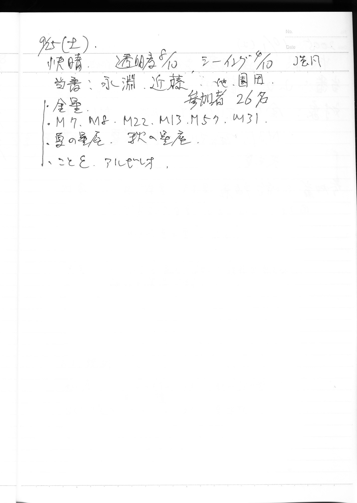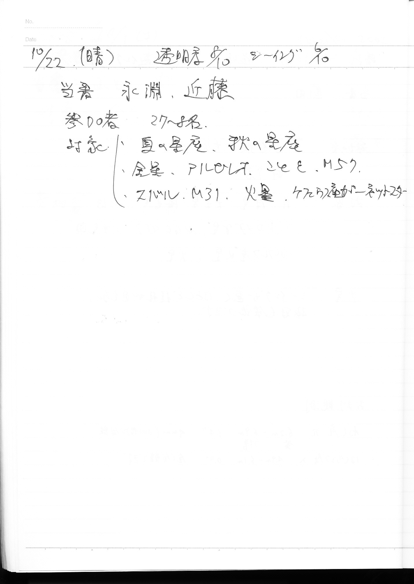 | 9日(土) | 天体観望会 | 西与賀コミニュティーセンター | 記録ノート画像⇒ 1 松林、園田 | ||