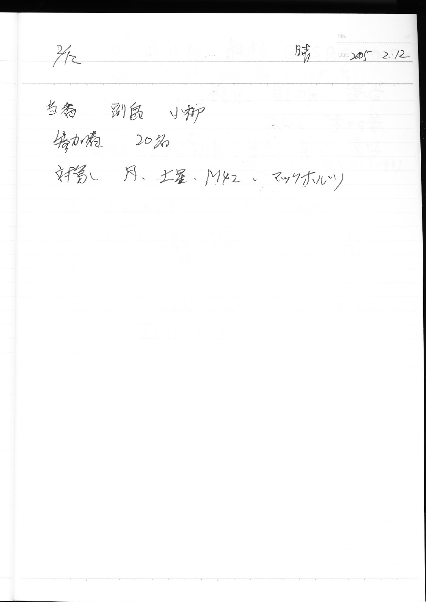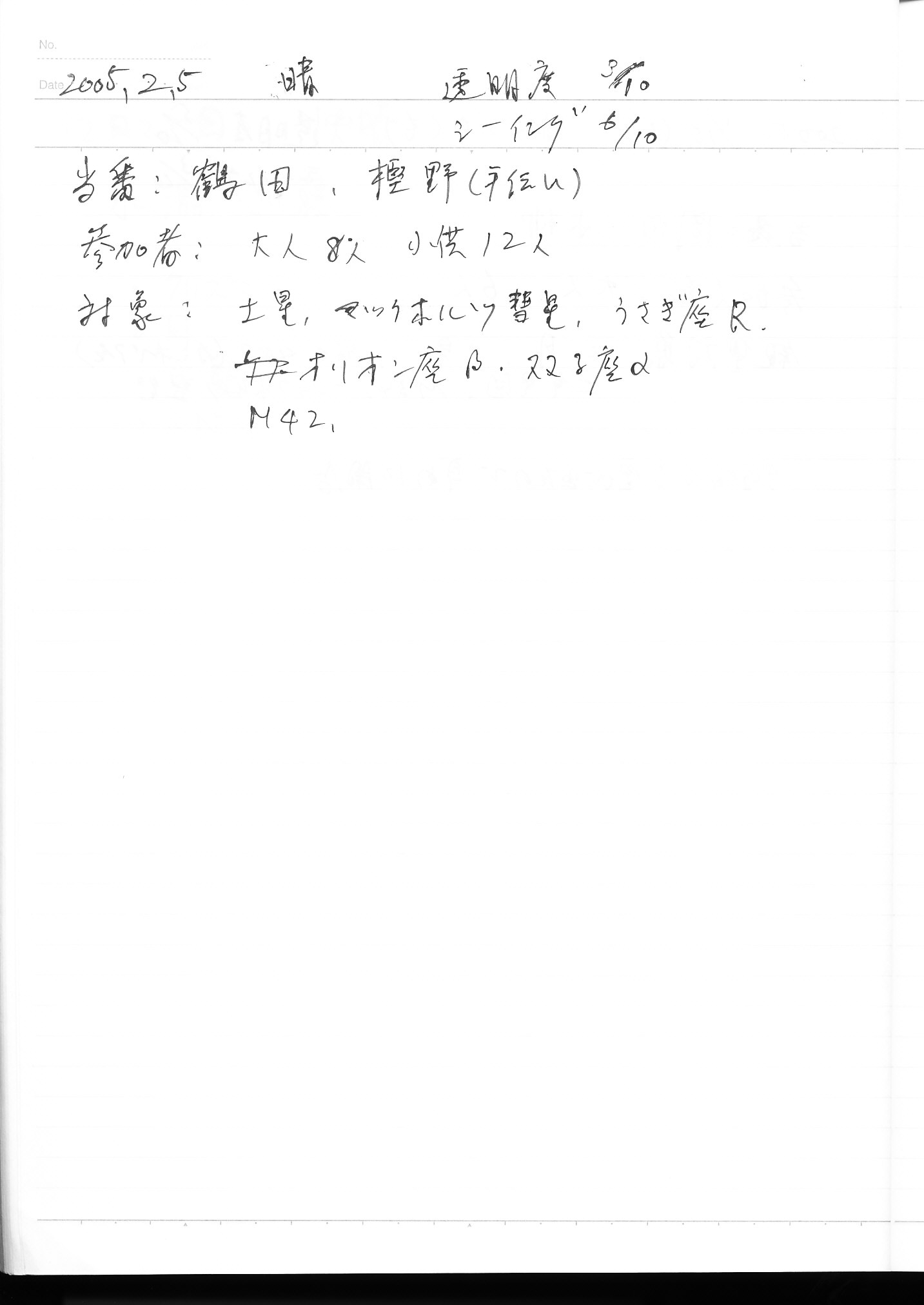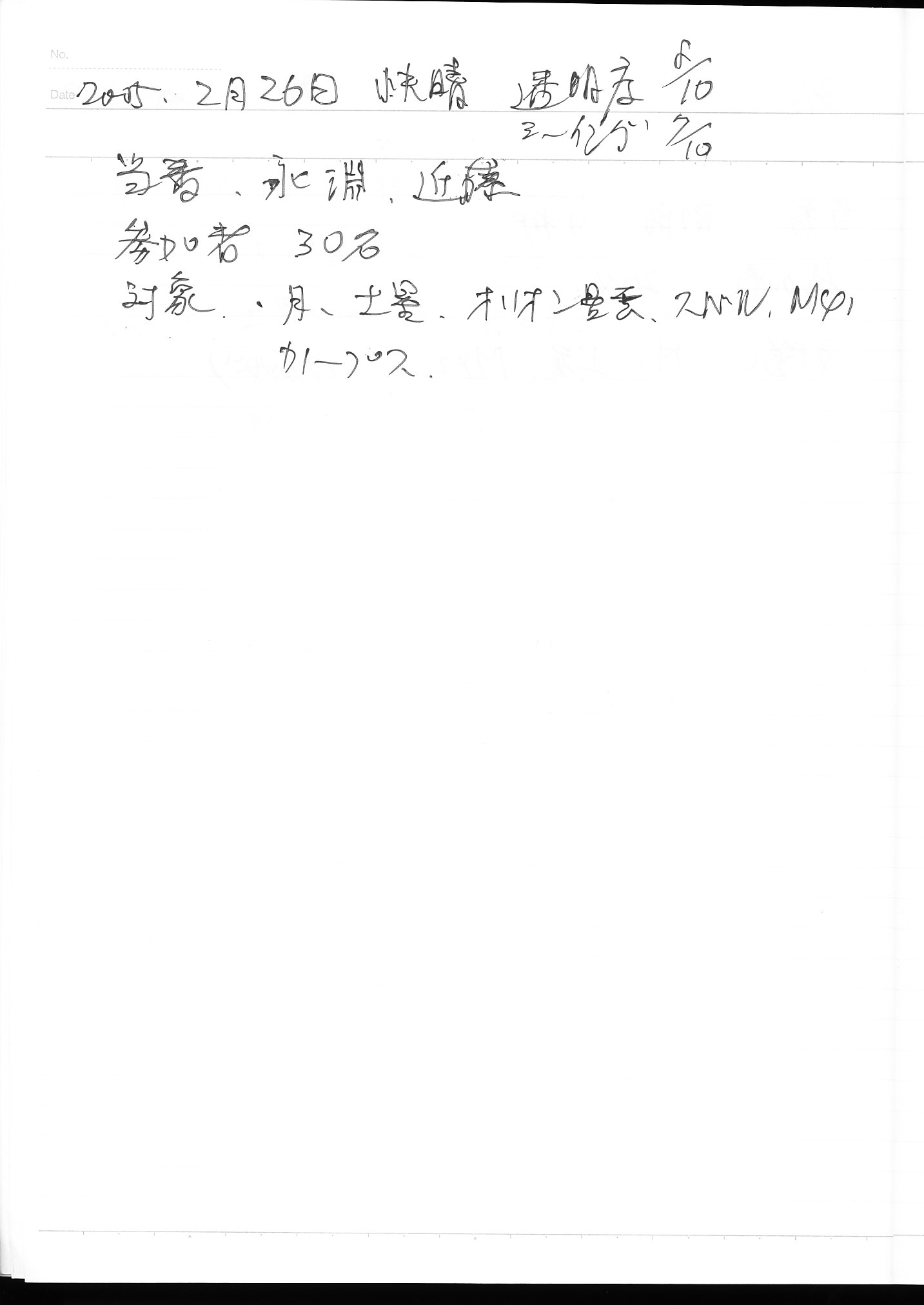 | 2月 | 5日(土) | 天体観望会 | 西与賀コミニュティーセンター | マルクホルツ彗星 | 記録ノート画像⇒ 1 鶴田、樫野 |