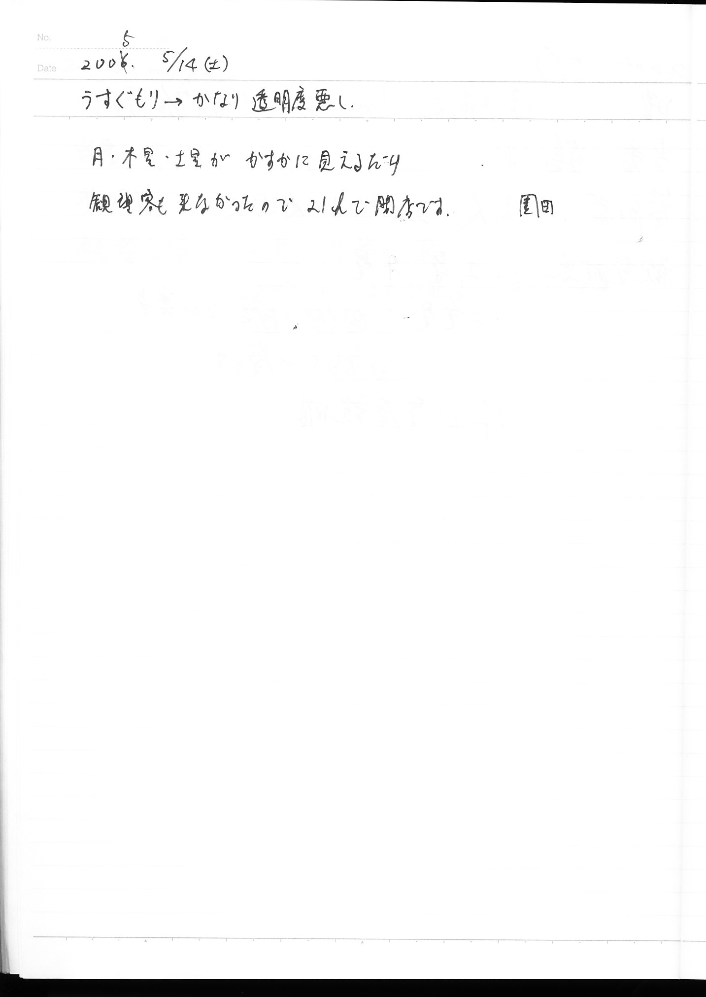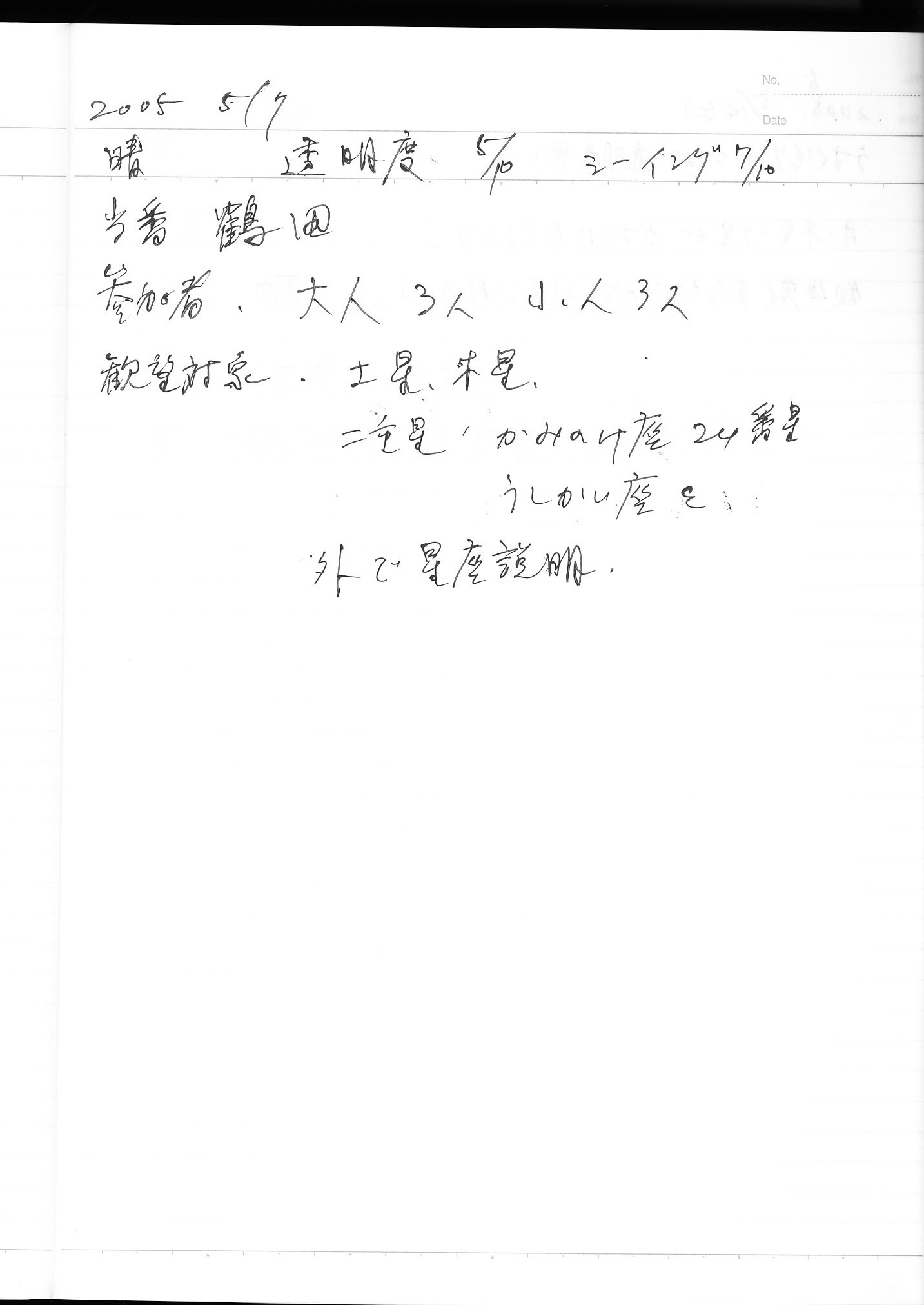 | 5月 | 7日(土) | 天体観望会 | 西与賀コミニュティーセンター | 記録ノート画像⇒ 1 鶴田 | |