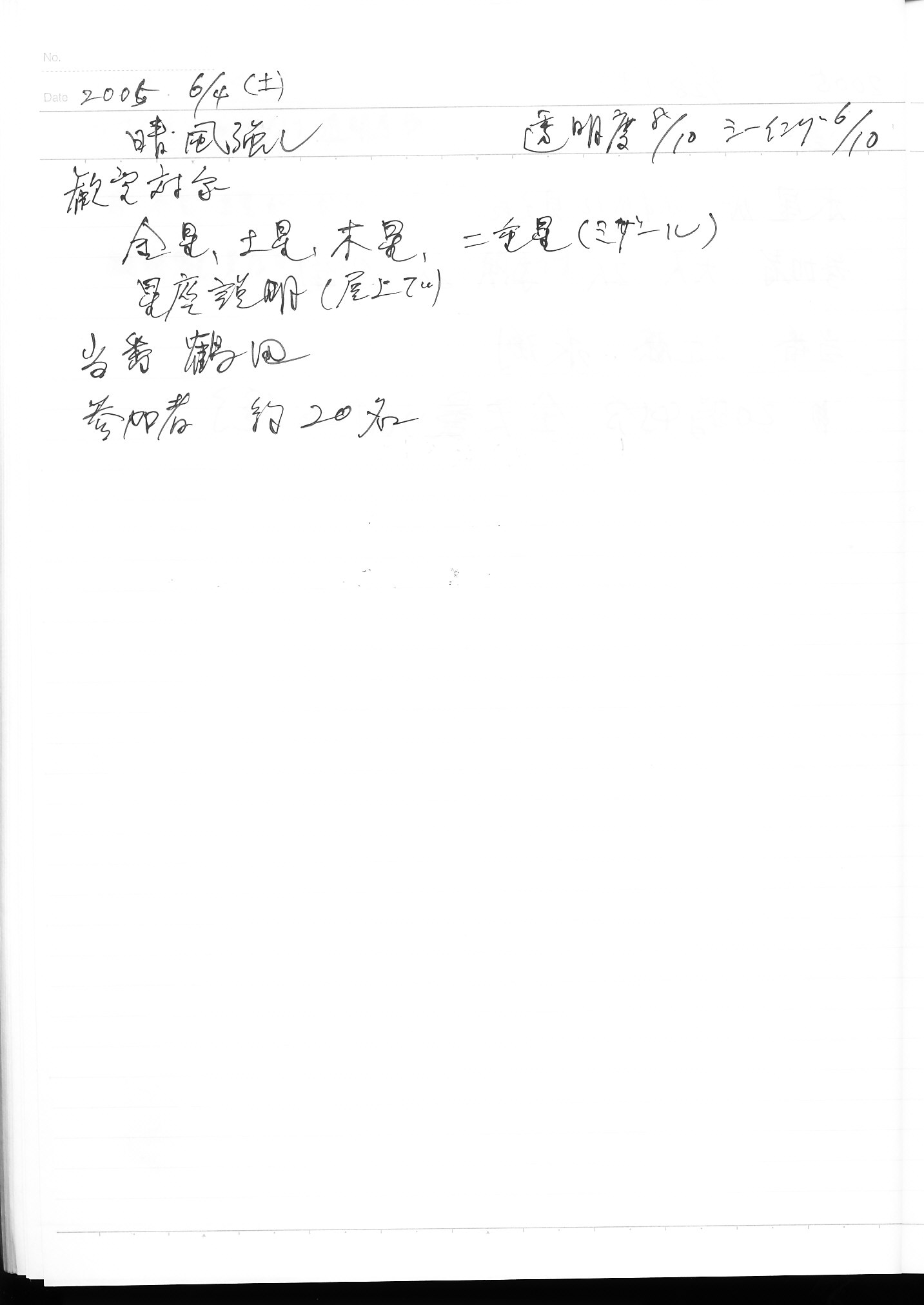 | 6月 | 4日(土) | 天体観望会 | 西与賀コミニュティーセンター | 記録ノート画像⇒ 1 鶴田 | |