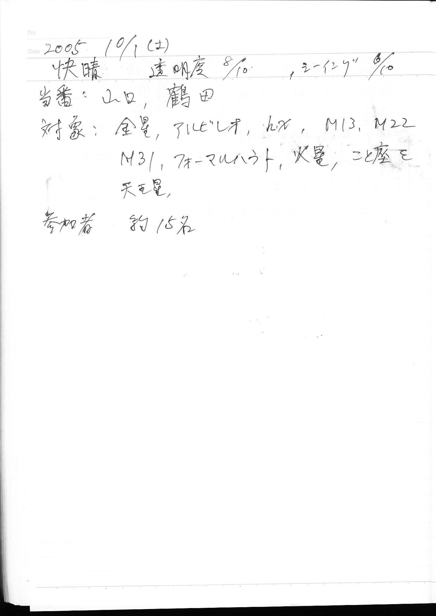 | 15日(土) | 天体観望会 | 西与賀コミニュティーセンター | 記録ノート画像⇒ 1 園田 | ||