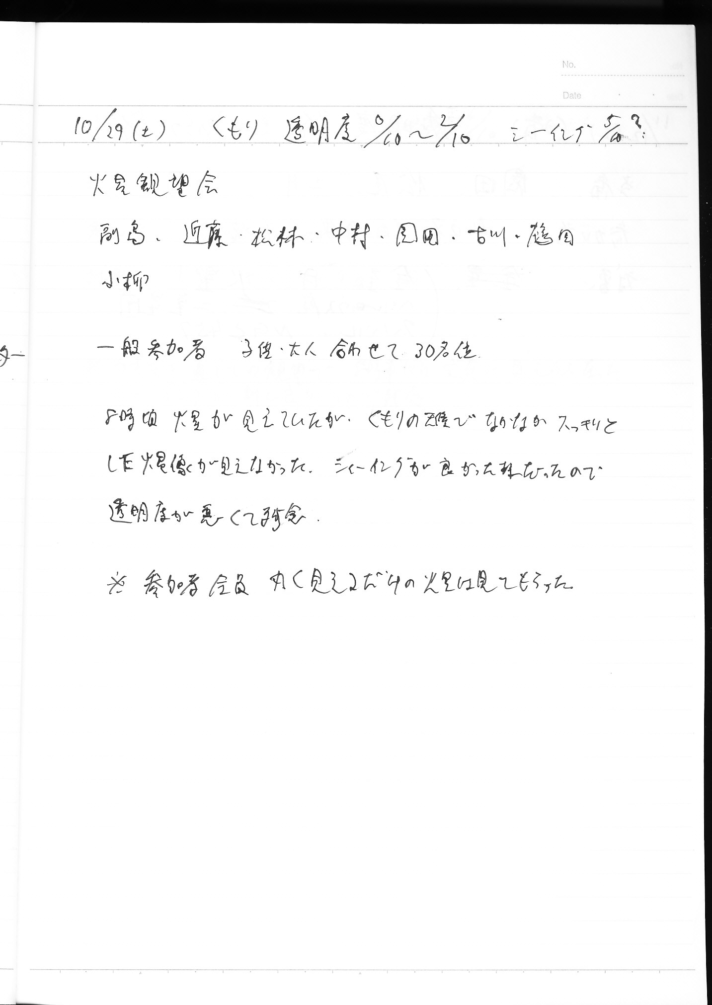 | 10月 | 1日(土) | 天体観望会 | 西与賀コミニュティーセンター | 記録ノート画像⇒ 1 山口、鶴田 | |