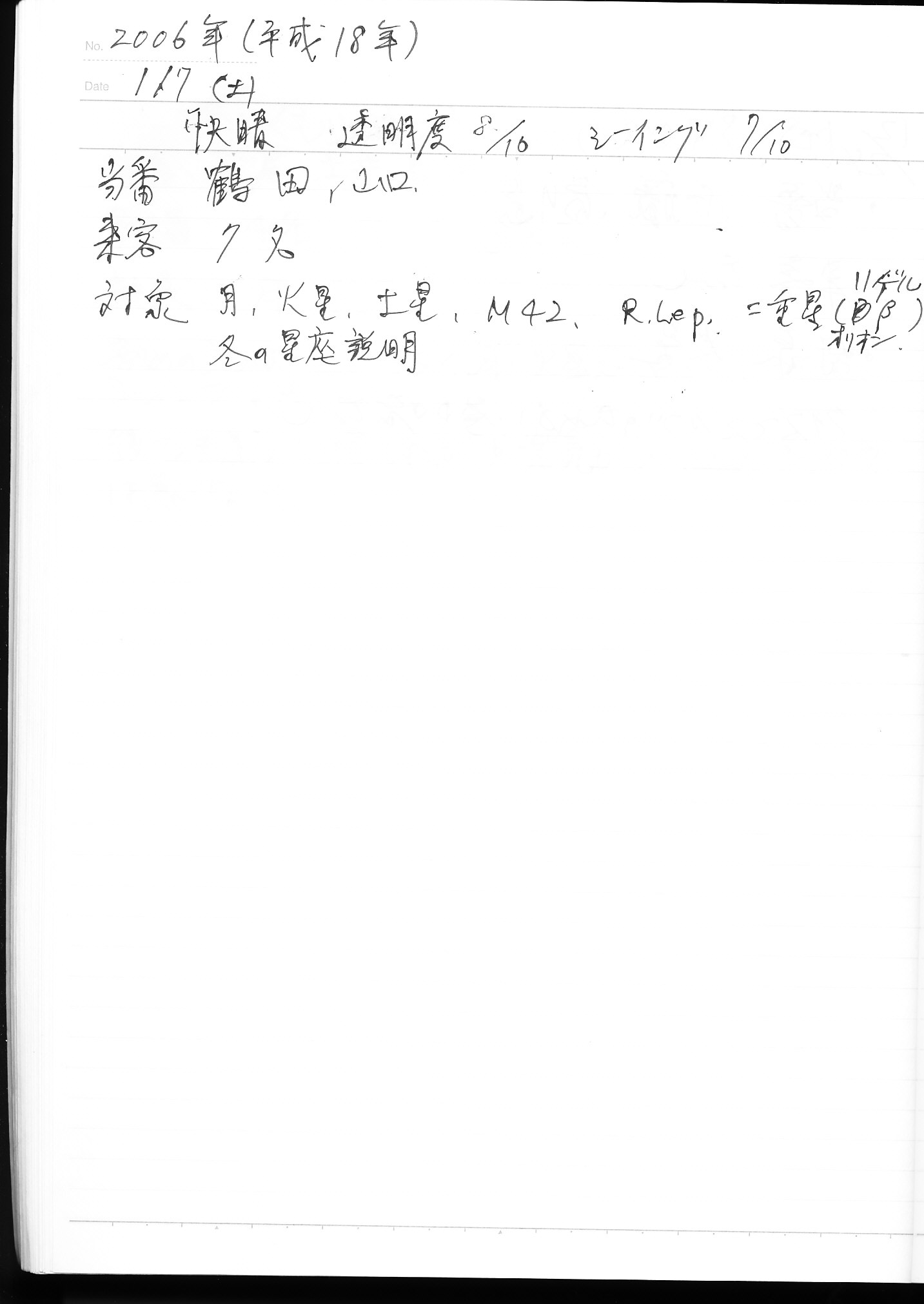 | 1月 | 7日(土) | 天体観望会 | 西与賀コミニュティーセンター | 記録ノート画像⇒ 1 鶴田、山口 | |