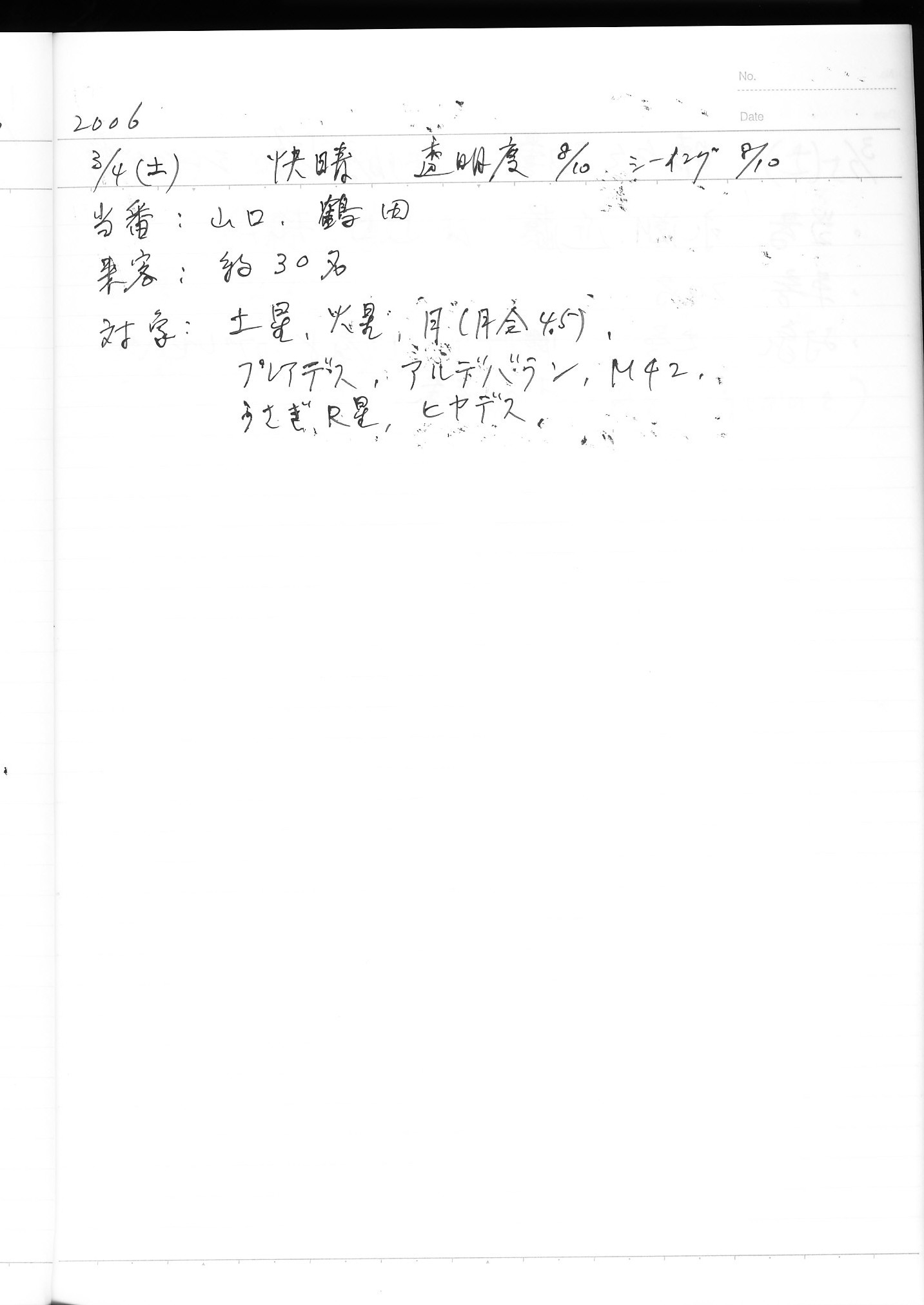 | 3月 | 4日(土) | 天体観望会 | 西与賀コミニュティーセンター | 記録ノート画像⇒ 1 山口、鶴田 | |