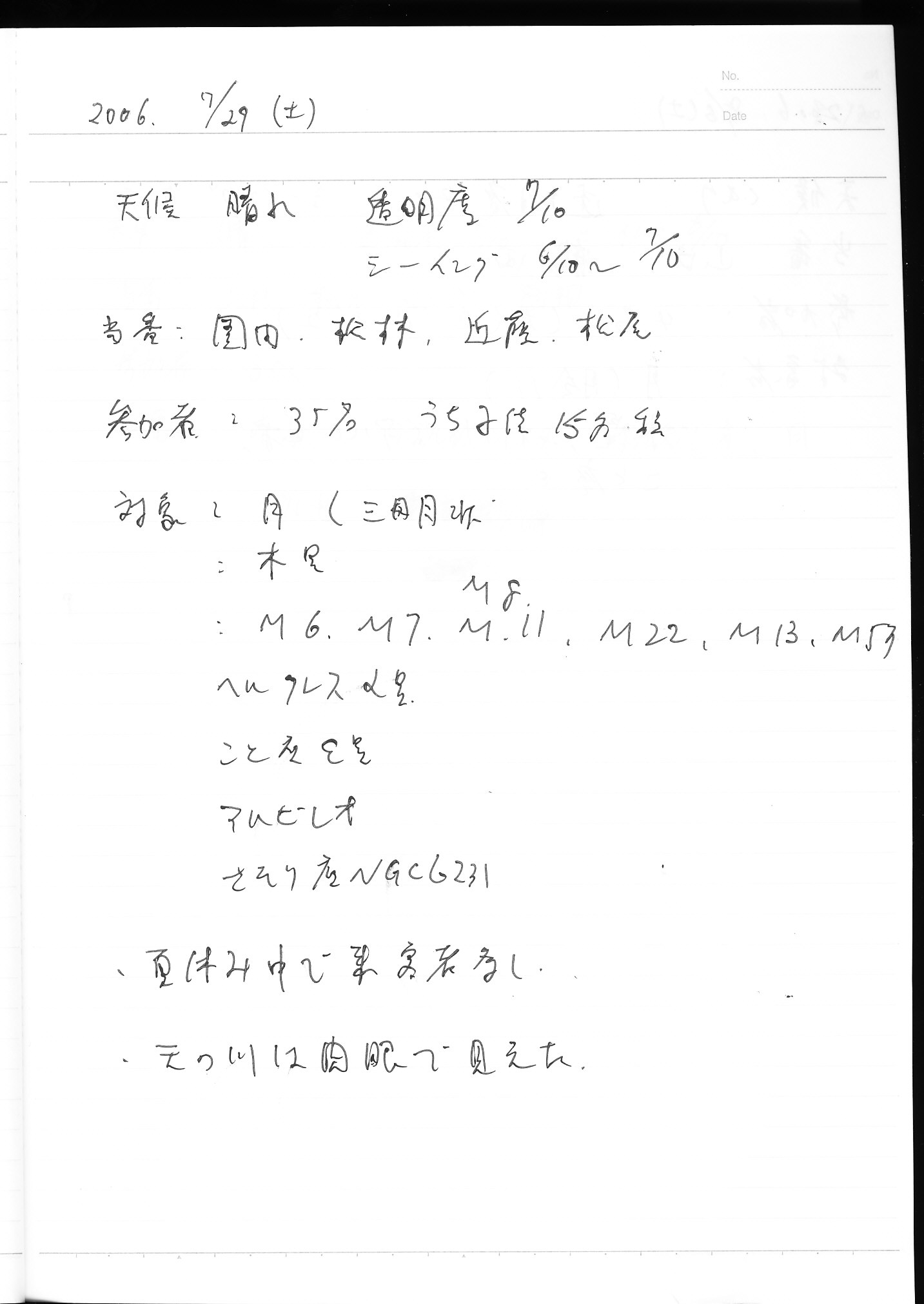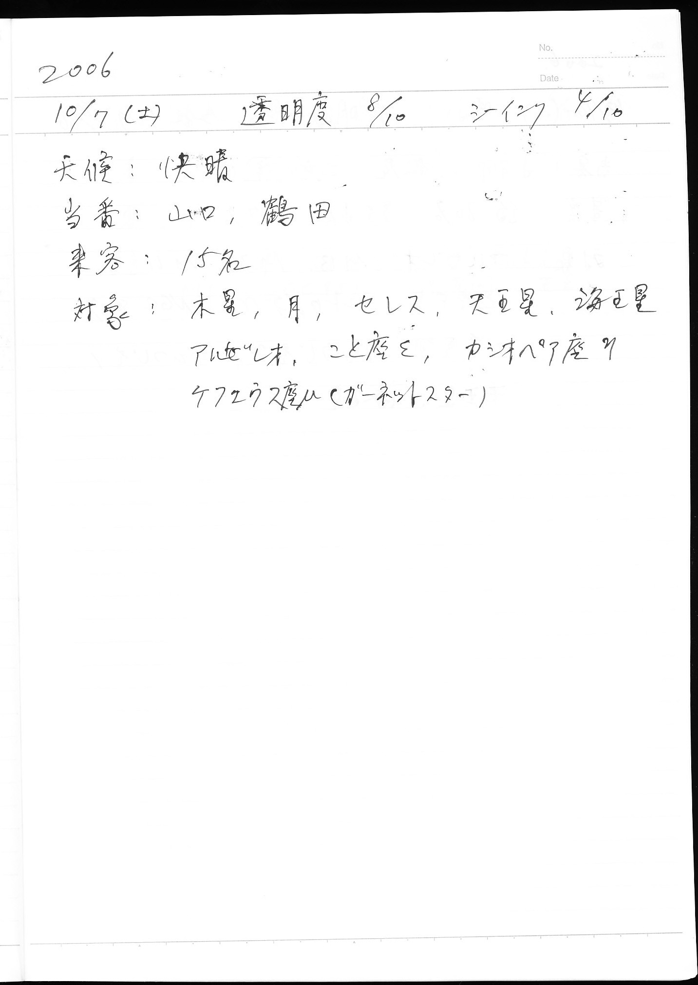 | 10日(土) | 天体観測会 | 西与賀コミニュティーセンター | 記録ノート画像⇒ 1 松尾、園田 | ||