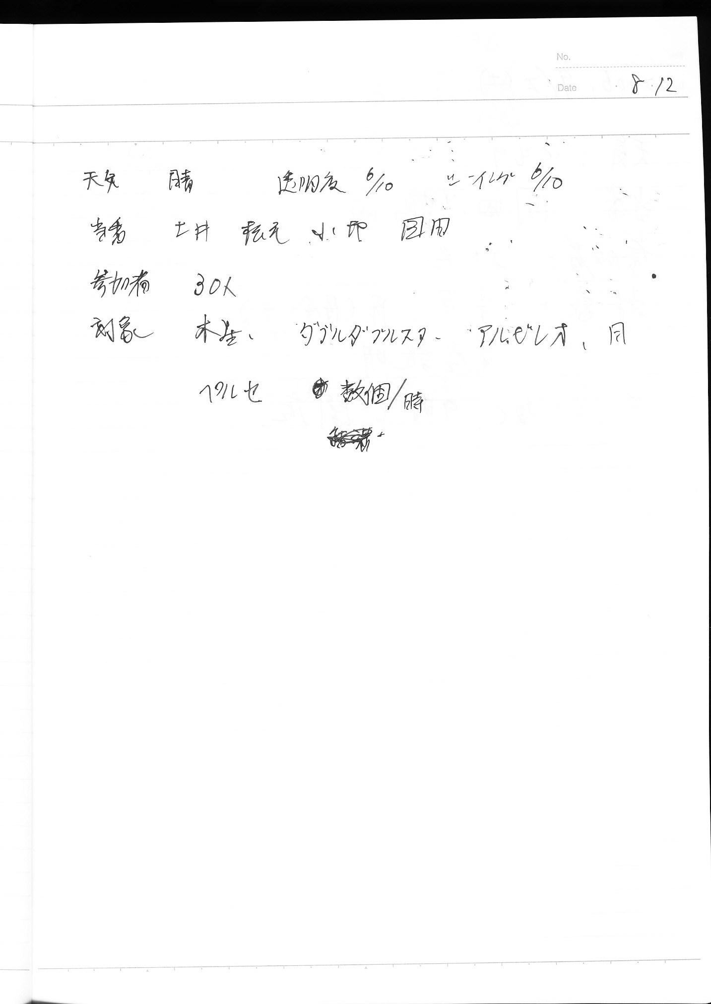 | 12日(土) | 天体観望会 | 西与賀コミニュティーセンター | ペルセ流星群観測 (数個/時) | 記録ノート画像⇒ 1 土井、松尾、小柳、園田 | |