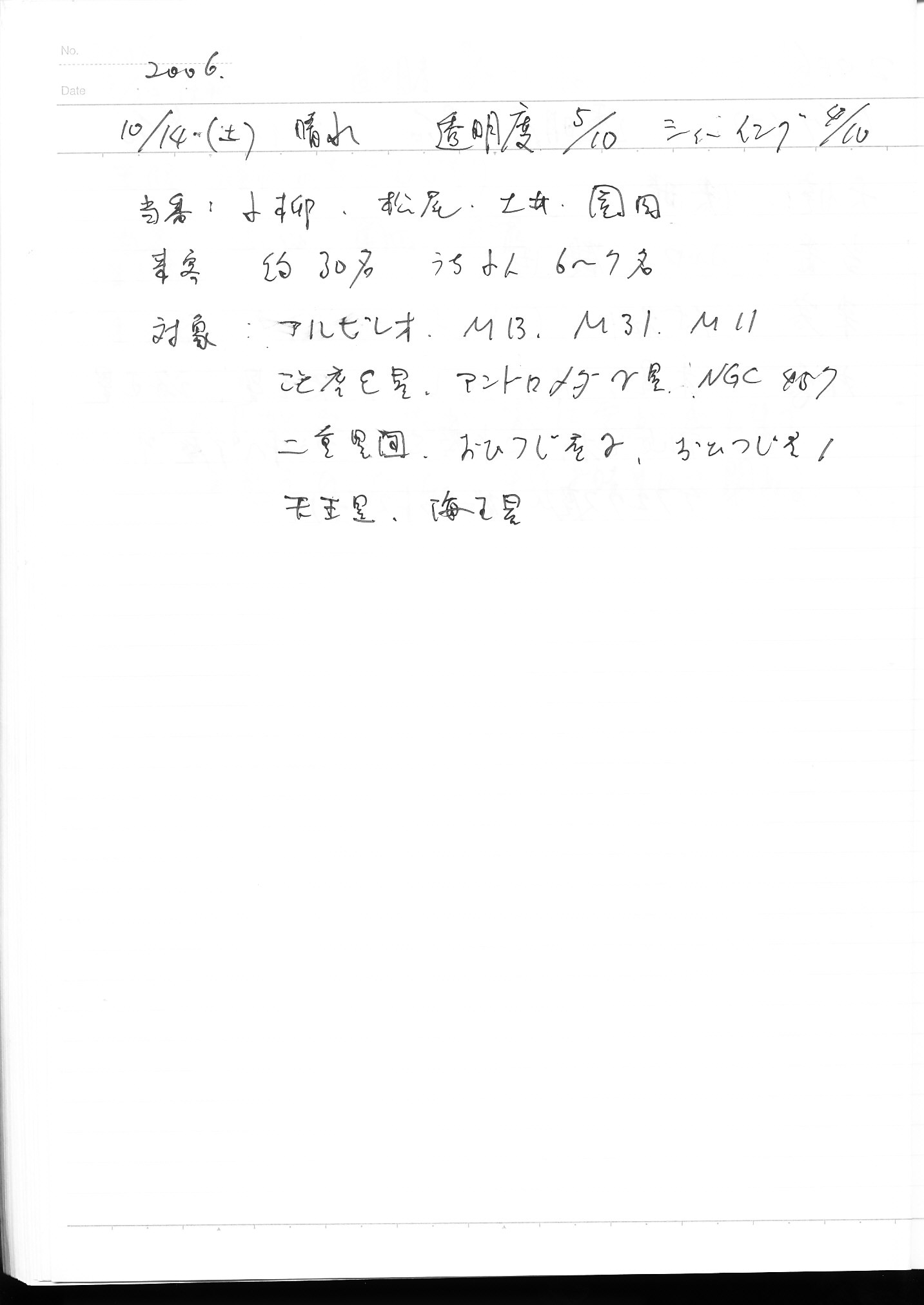 | 14日(土) | 天体観望会 | 西与賀コミニュティーセンター | 記録ノート画像⇒ 1 小柳、松尾、土井、園田 | ||