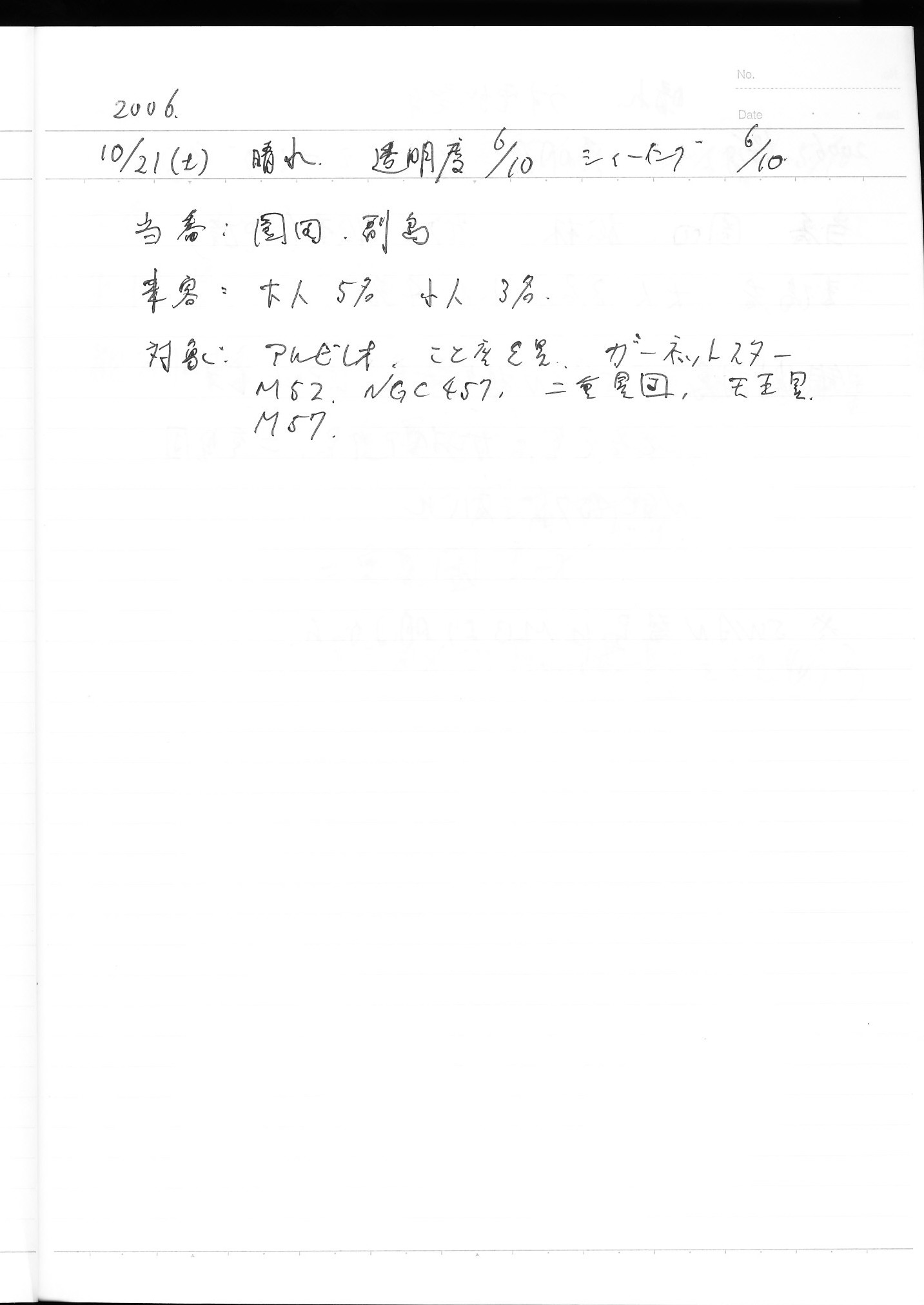 | 10月 | 7日(土) | 天体観望会 | 西与賀コミニュティーセンター | 記録ノート画像⇒ 1 山口、鶴田 | |