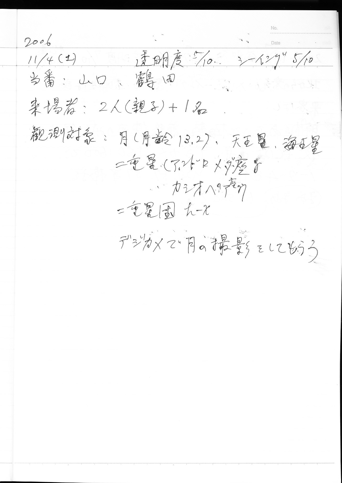 | 11月 | 4日(土) | 天体観望会 | 西与賀コミニュティーセンター | 記録ノート画像⇒ 1 山口、鶴田 | |