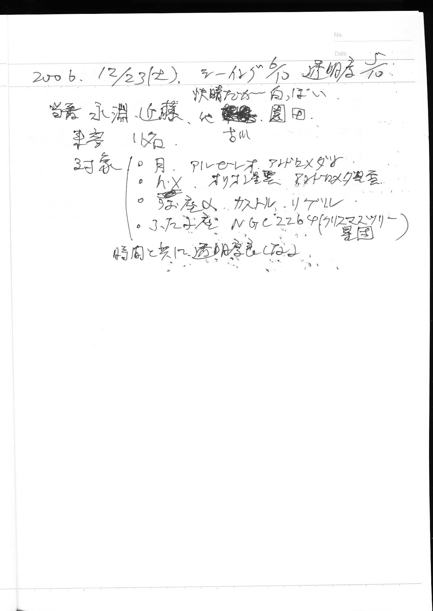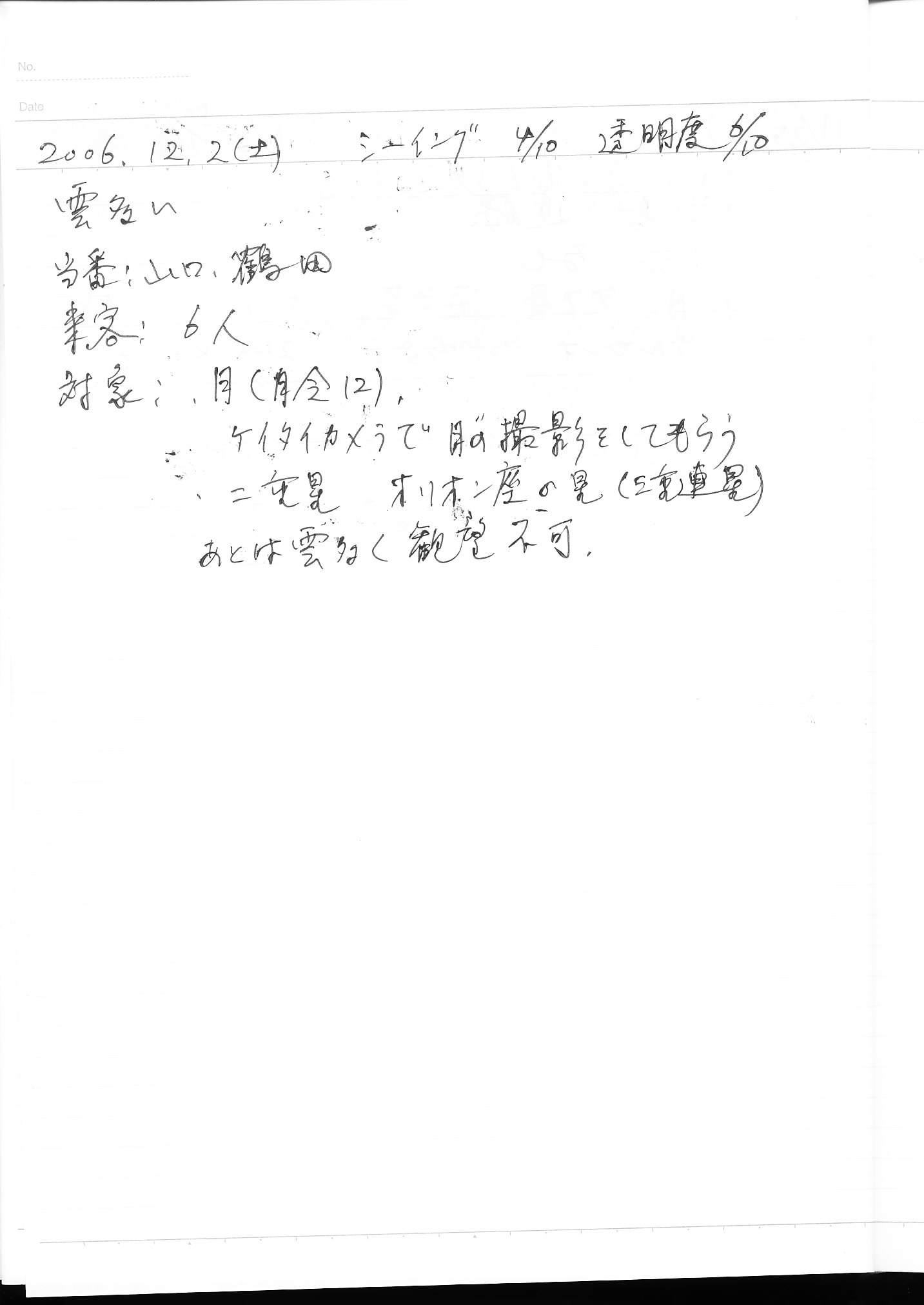 | 12月 | 2日(土) | 天体観望会 | 西与賀コミニュティーセンター | 記録ノート画像⇒ 1 山口、鶴田 | |