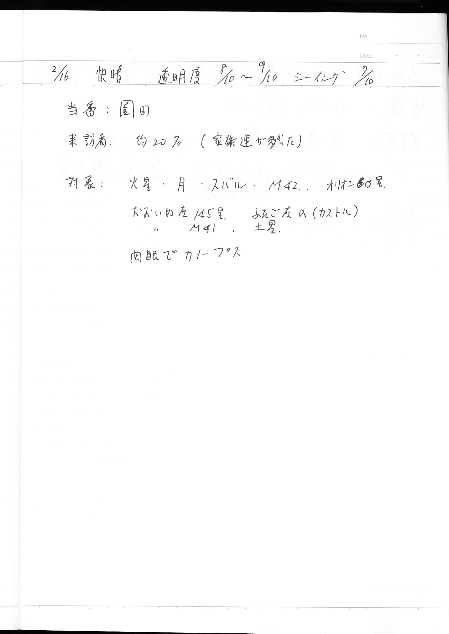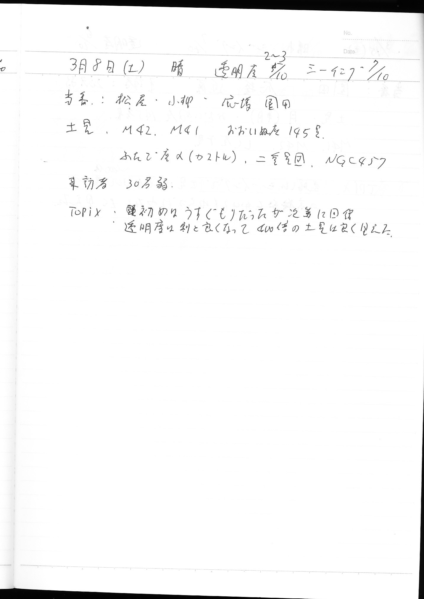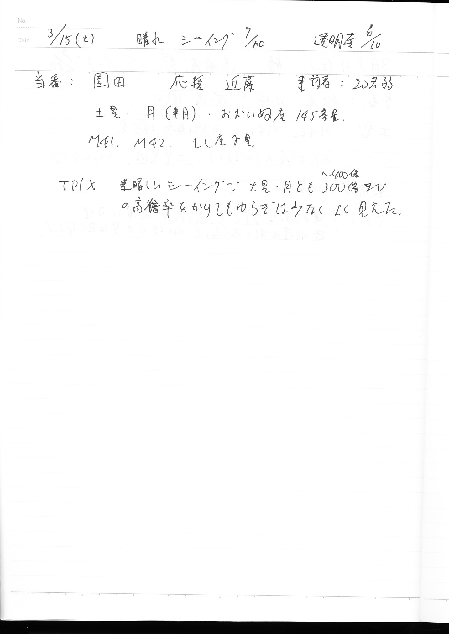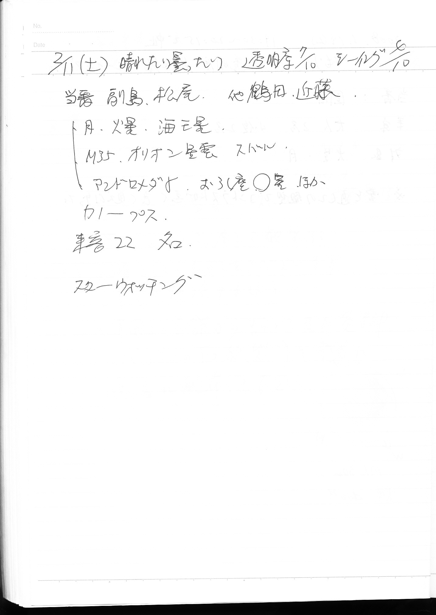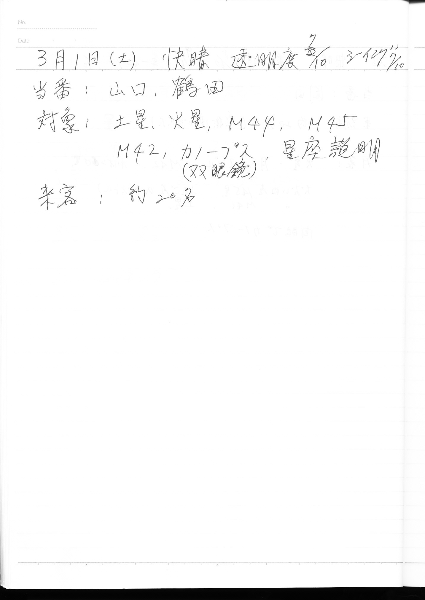 | 3月 | 1日(土) | 天体観望会 | 西与賀コミニュティーセンター | 記録ノート画像⇒ 1 山口、鶴田 | |
