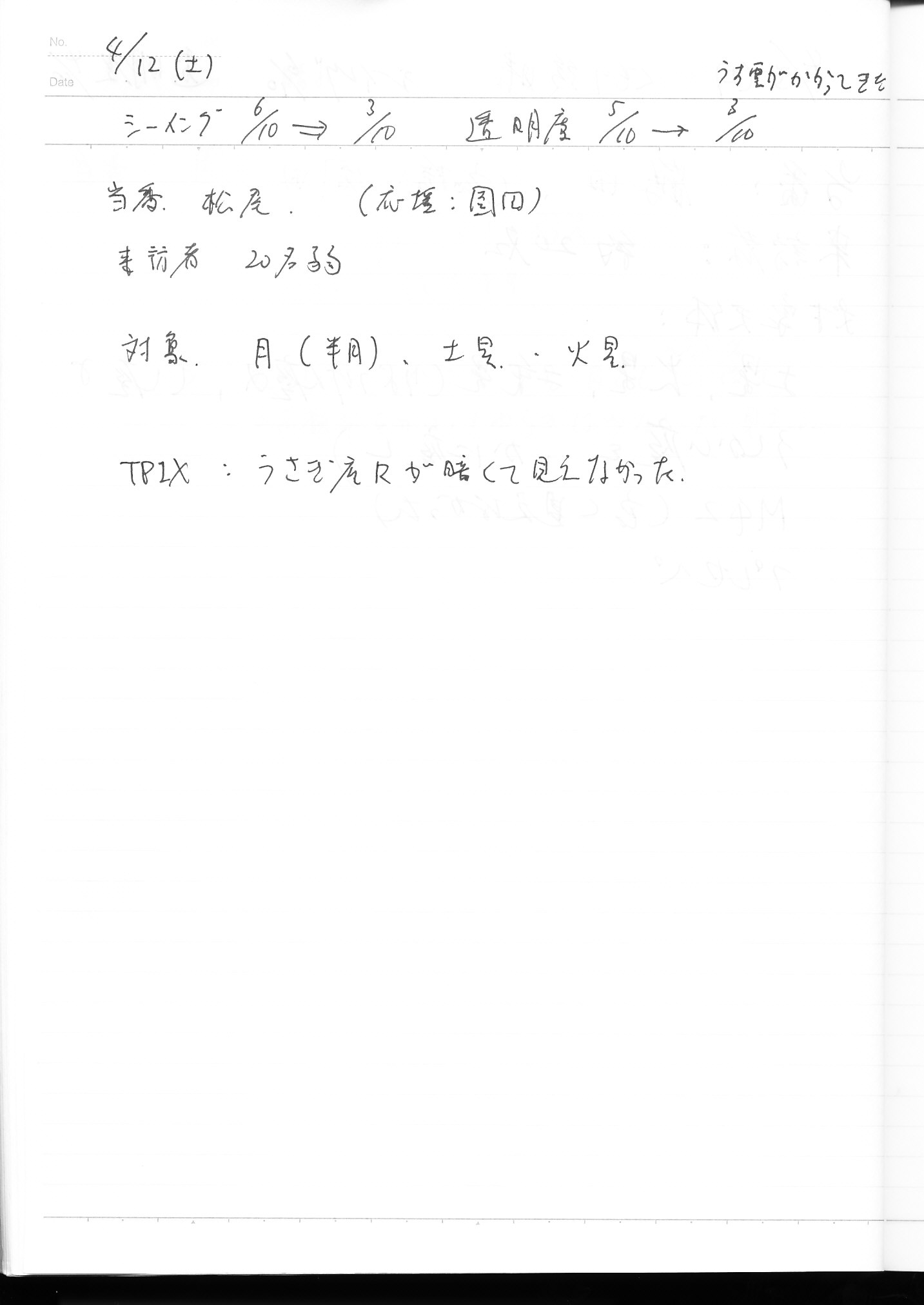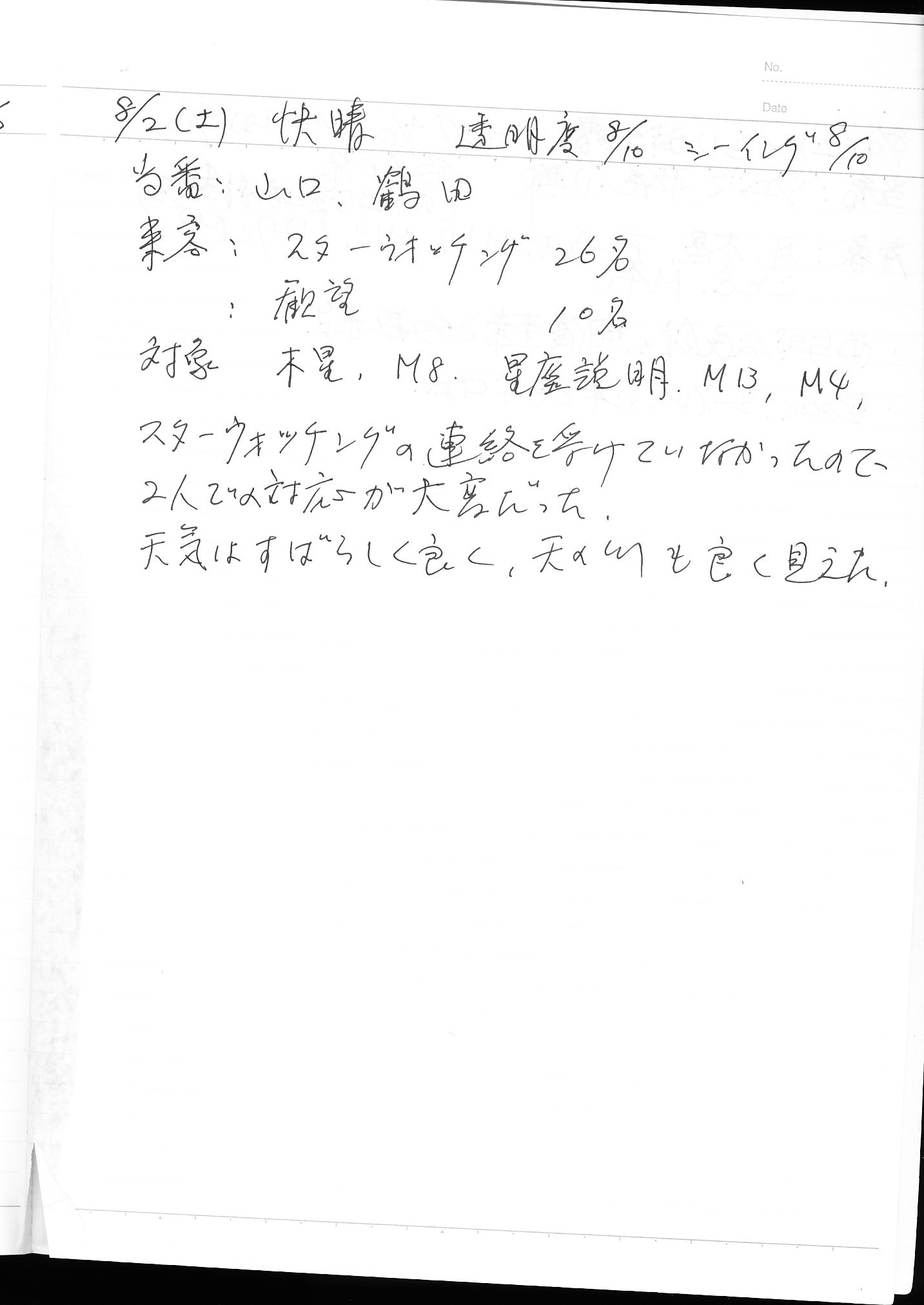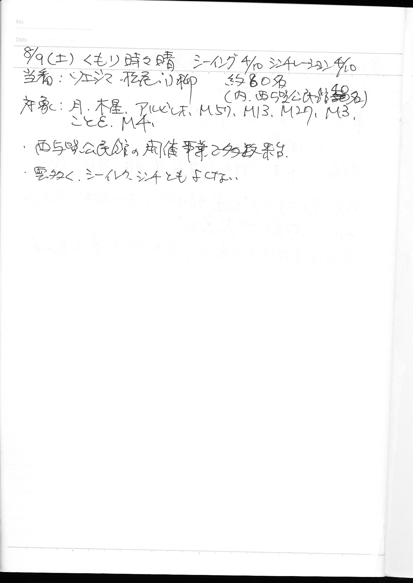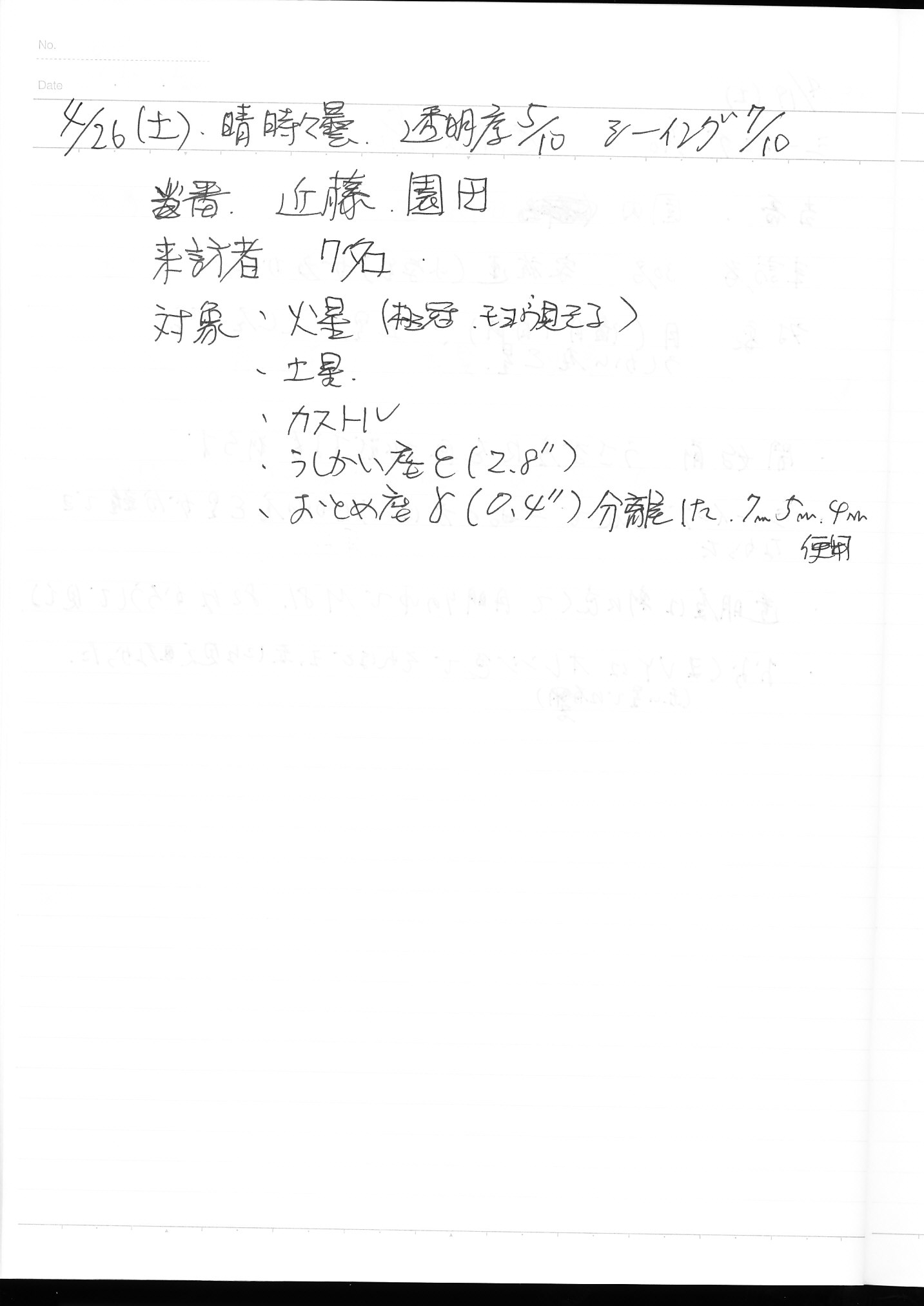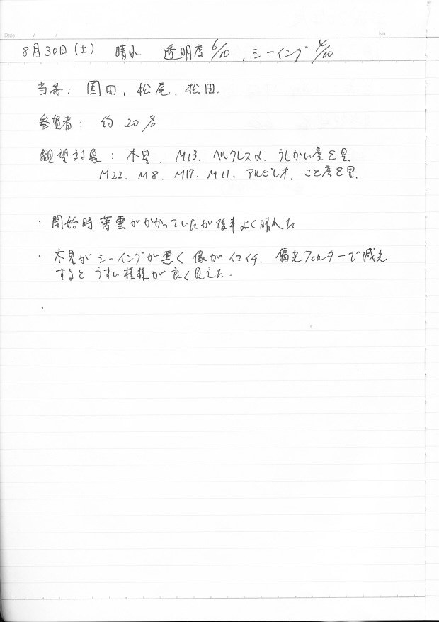 | 12日(土) | 天体観望会 | 西与賀コミニュティーセンター | 記録ノート画像⇒ 1 松尾、園田 | ||