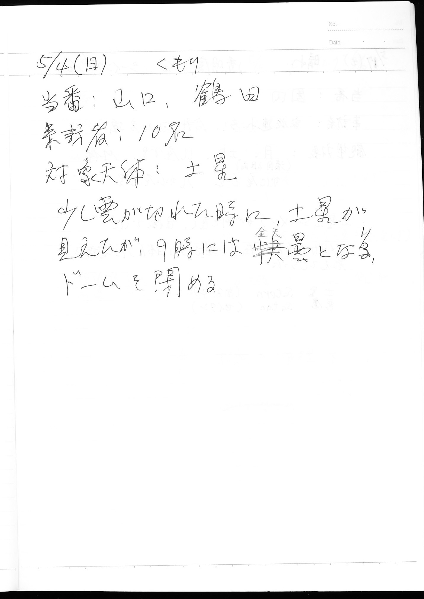 | 4日(日) | 天体観望会 | 西与賀コミニュティーセンター | 記録ノート画像⇒ 1 山口、鶴田 | ||