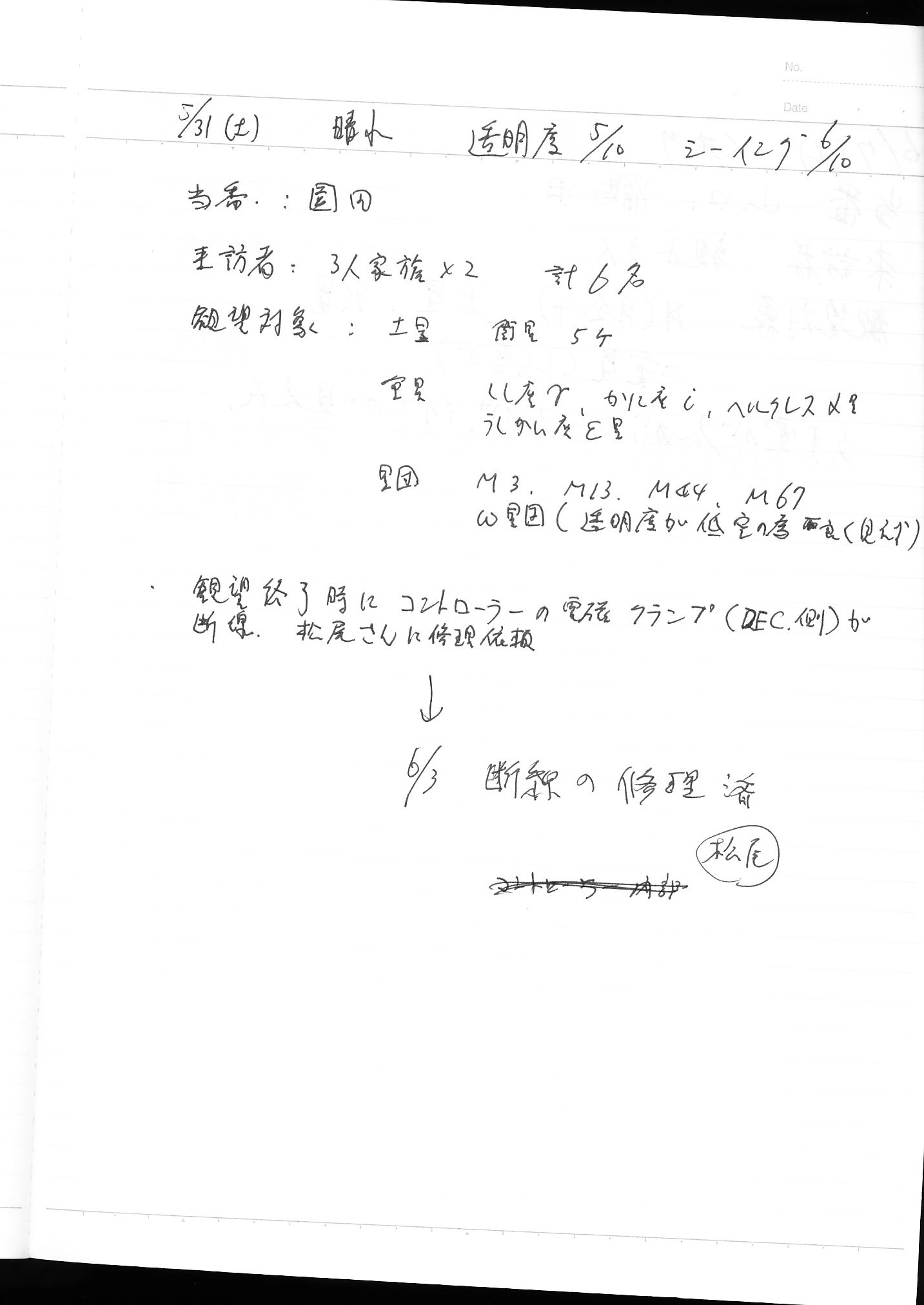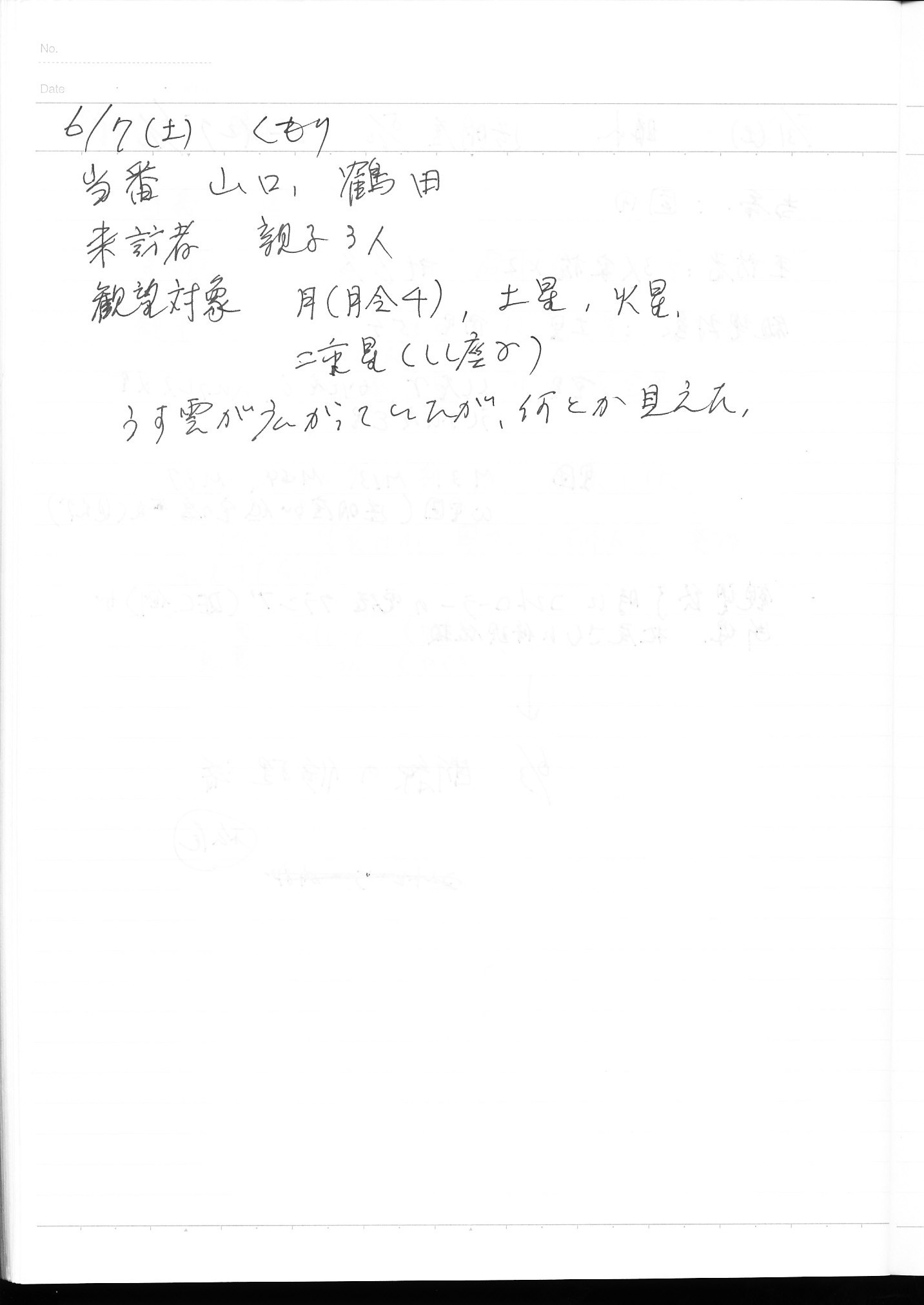 | 6月 | 7日(土) | 天体観望会 | 西与賀コミニュティーセンター | 記録ノート画像⇒ 1 山口、鶴田 | |