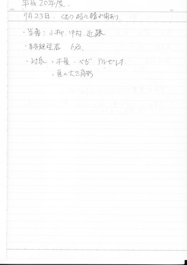 | 18日(日) | 総会 | 太良観測所 | H20年度総会 | 鶴田、園田、近藤、草野、澁谷、白石、副島、土井、藤原、前田、松尾、山口よ、山口け 写真→1、2、3、4、5 |